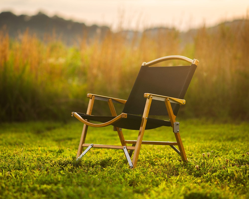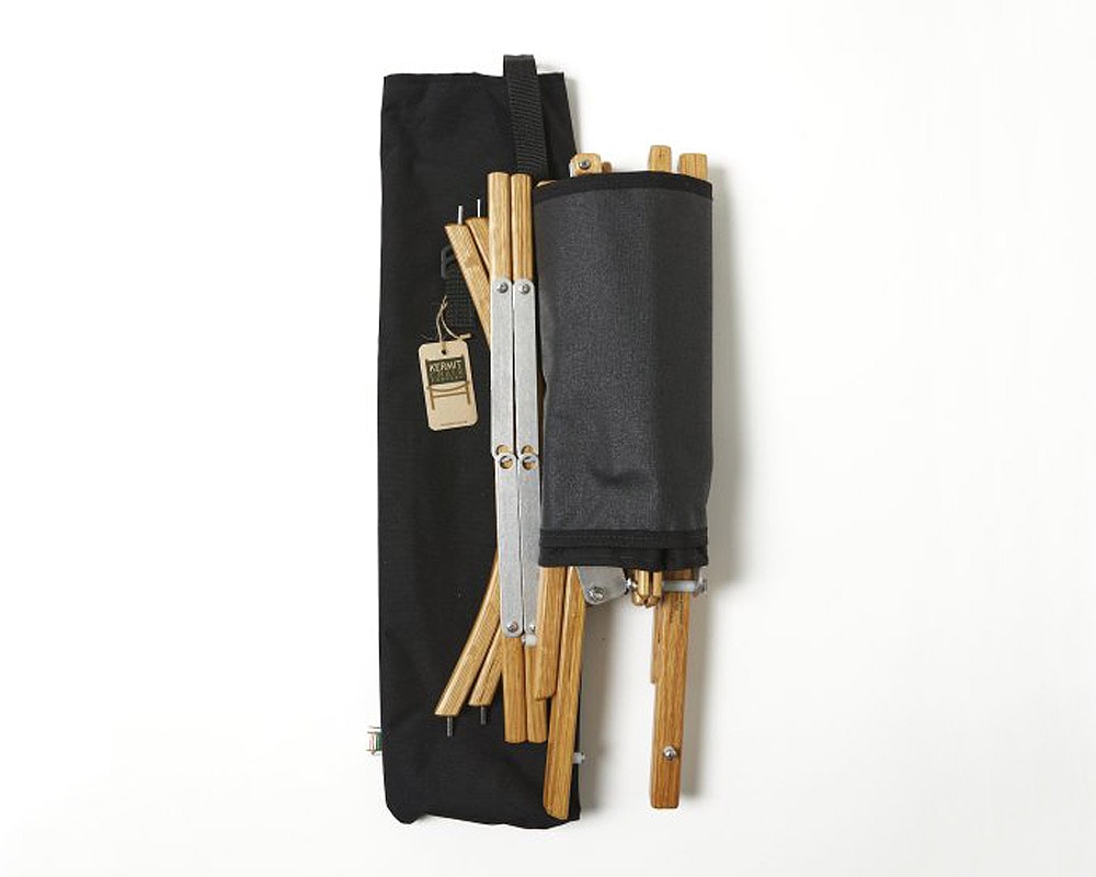 1984年に設計されたアメリカのガレージブランド「Kermit Chair Company/カーミットチェアカンパニー」の「Kermit Chair/カーミットチェア」です。ブランド名にもなっている「カーミットチェア」は、洗練されながらも、木のぬくもりを感じるデザインが特徴的で、他の携帯用のアウトドアチェアでは見られない快適さと美しさを持つ軽量のウッドチェアです。チェアは広葉樹とアルミニウムから作られていて、すべての木材はダブルマリングレードポリウレタン加工が施され、椅子を保護しています。ファブリックは1000デニールナイロンで、ほつれを防ぐために熱で丁寧に切断しています。パーツ毎に分解可能で58cmの長さの小さな袋に折りたたんで詰み込めて、持ち運びに便利です。また、組み立てた状態でも2つに折り畳むことができますので、その状態でも簡単に持ち運べます。ブランドが立ち上がって30年間変わる事のないデザイン、またすばやく簡単にパーツごとに分解・小さな袋に折りたたんで収納・持ち運びができる携帯性をもったカーミットチェアは、最高品質の最も快適なチェアで、現在もテネシー州ナッシュビルにて、1点づつハンドメイドで製作されています。[OPTION]Leg Extensions SET/レッグエクステンションセットを取り付けると、シート高約320mmのカーミットチェアを約430mmまで高くすることができ、一般的なテーブル(H700mm程度)に合わせることができます。前脚部に短いエクステンション、後ろ足部に長いエクステンションをご装着頂きご利用下さい。