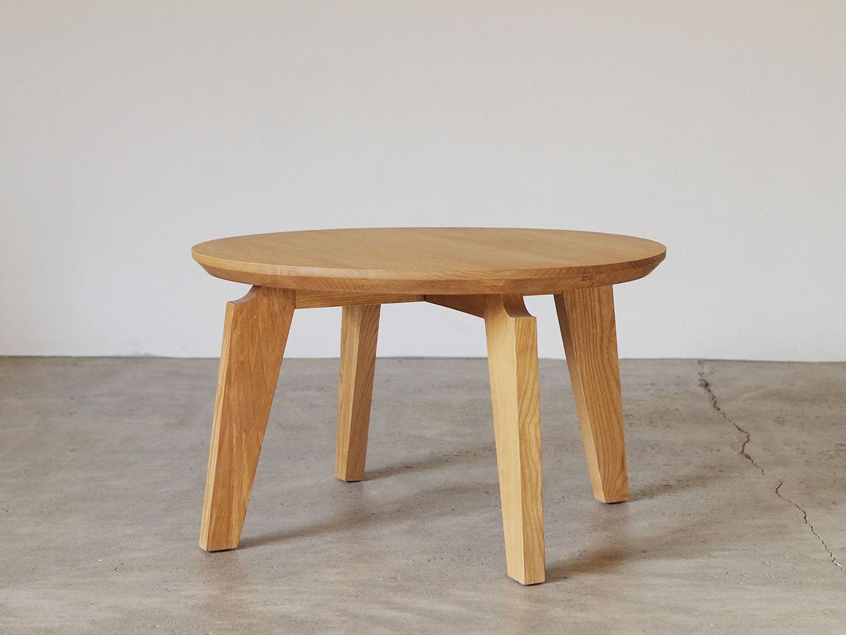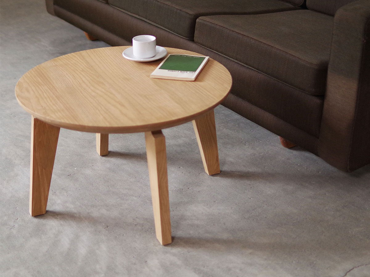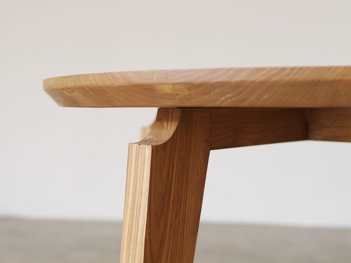 小振りで使い勝手の良い円形テーブル。シンプルなようでいて、エレガントでまとまりのあるデザインです。アッシュ無垢材を全面に使用し、他の樹種とも相性よく合わせやすい色合いで仕上げられています。