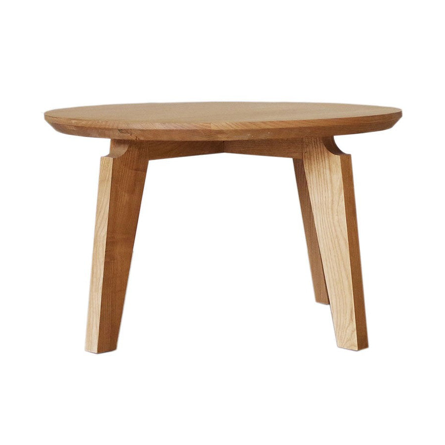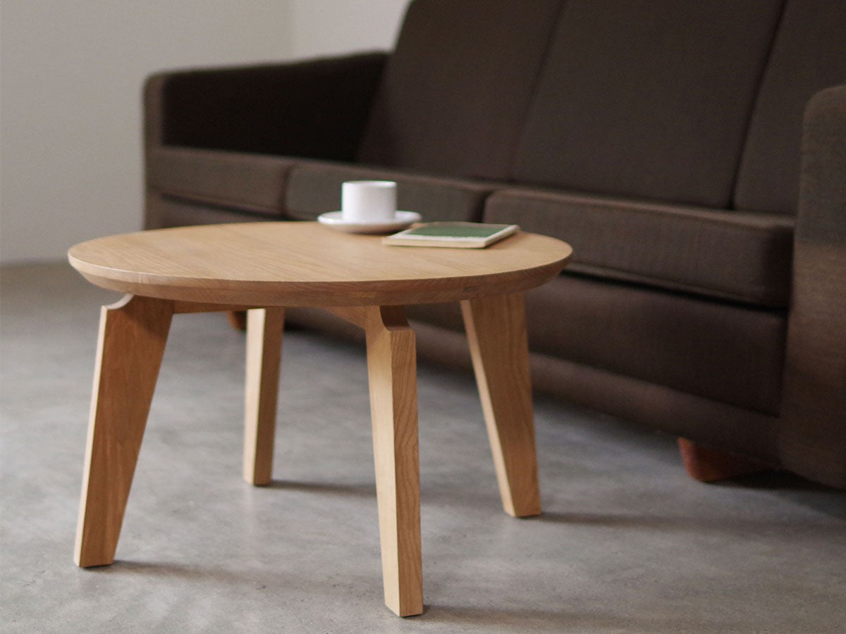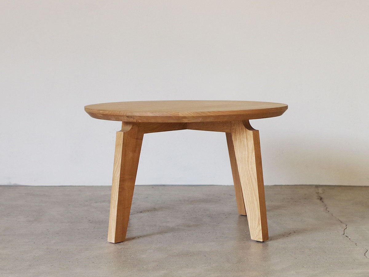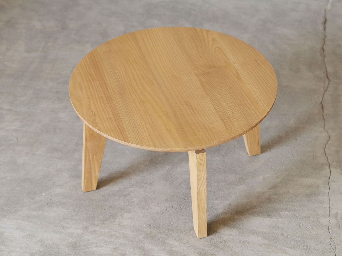 小振りで使い勝手の良い円形テーブル。シンプルなようでいて、エレガントでまとまりのあるデザインです。アッシュ無垢材を全面に使用し、他の樹種とも相性よく合わせやすい色合いで仕上げられています。