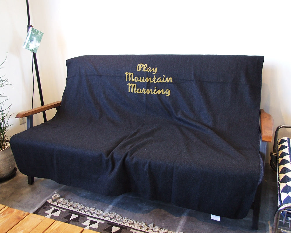 毎年リリースされる、Landscape Products(ランドスケーププロダクツ)の「“Playmountain Morning” Blanket(プレマウンテン モーニング ブランケット)」です。 今季はアメリカROTHCO社のウール混のブランケットを使用しています。 1953年にマンハッタンにて創業の「ROTHCO」はアメリカの陸・海軍にミリタリー製品を供給してきた老舗ミリタリーメーカー。 大判サイズで、膝掛けようのブランケットとしてだけではなく、ソファやベッドに掛けたり、見せたくないところをカバーしたりするマルチカバー的な使い方もおすすめです。 グレー地のブランケットはどんなインテリアにもなじみ 保温効果もある厚手の生地で、かすれを出したラバープリントを中央に入れられたメッセージが、しっかりとした存在感を発揮し、お部屋のアクセントとしてもインテリアにとけ込んでくれます。