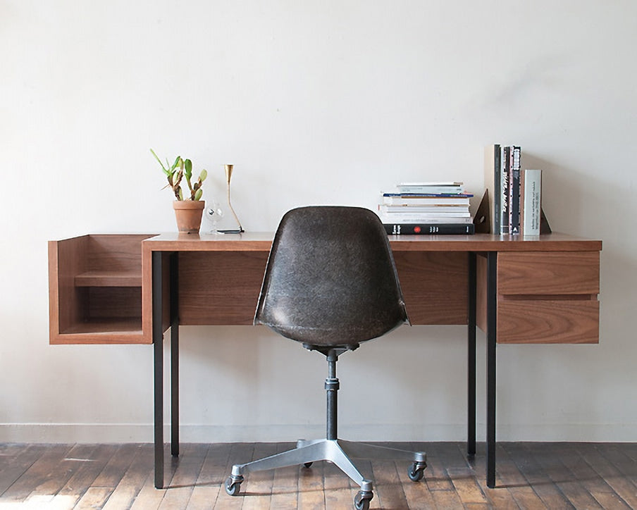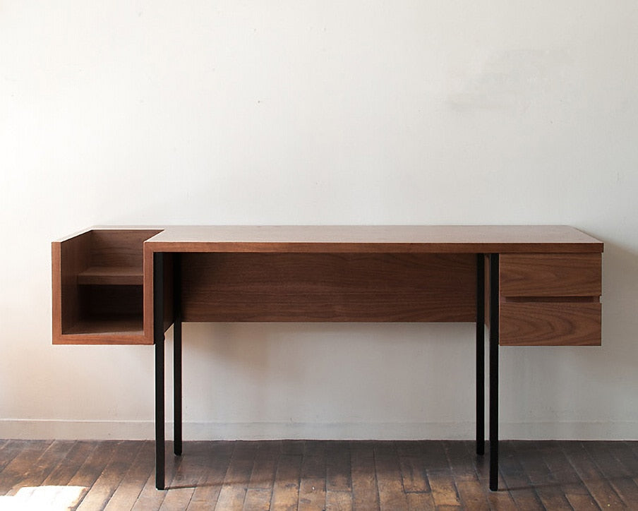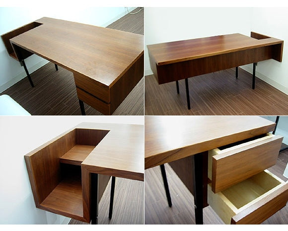 ランドスケープの「Tights(タイツ)シリーズ」の新作のスタディー・デスクです。 使い勝手のいい広いワイドを確保し、左右の機能的で特徴のある収納を備えているのが特徴的です。 チークやメープルに木材の変更も可能で木目により雰囲気が変わるのも魅力的なデスクです。 シンプルな構造と、直線的なフォルムがモダンなデザインで、左側収納部は高低差のある、使い手の工夫次第で様々な収納が楽しむことが出来ます。