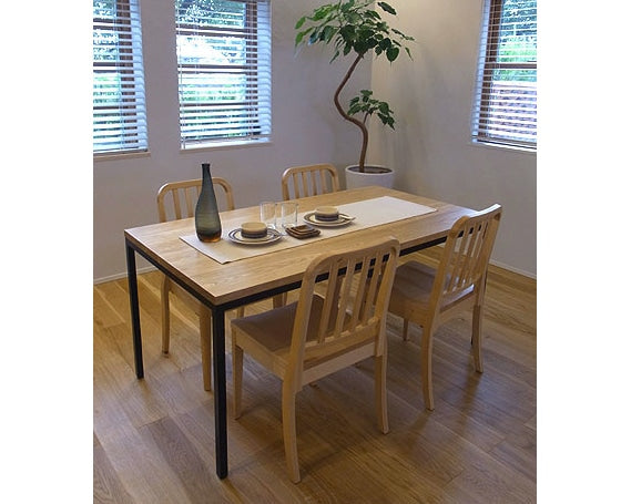 Landscape Products(ランドスケーププロダクツ)の「Tights(タイツ)シリーズ」のダイニングテーブルです。 直線のみのとてもシンプルなデザインで、空間をきれいに見せてくれるダイニングテーブルです。 ワイドも1500mmと二人で並んでもゆったり使うことができます。 30mm厚の無垢材をオイルフィニッシュで仕上げた美しい天板で、ナラ材は世界最高といわれる北海道産の節有り材を使用。経年によって深みが増していく天然木本来のよさを存分に堪能することができます。 また、強度は確保しつつ、より細く仕上げた脚部はアジャスターが付いていますので、多少の床の凹凸に対応できます。シンプルな構造と直線的なフォルムがありそうでなかったモダンなダイニングテーブルです。