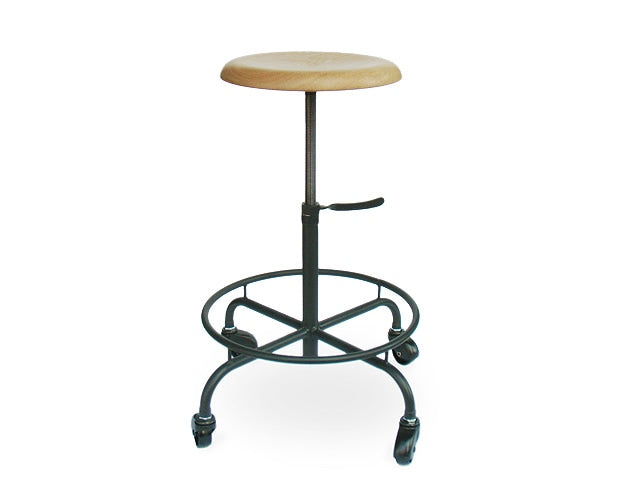 鹿児島のRoam/ローム松田創意氏が手掛ける美しいスツールです。 木工ろくろで挽いた座面に鉄の脚をもつ、一見すると工業的なスツールですが、細くスッと伸びたキャスター付きの鉄脚と温もりのある座面の絶妙なバランス感は、気取りすぎない柔らかな印象を空間に与えてくれます。 生活の道具としての魅力を併せ持ったスツールです。
