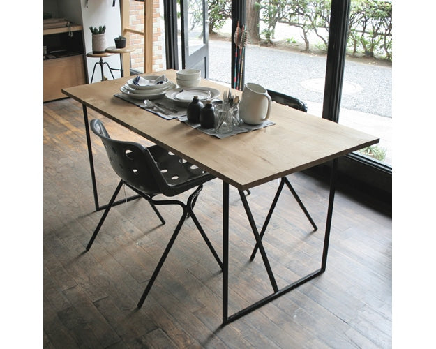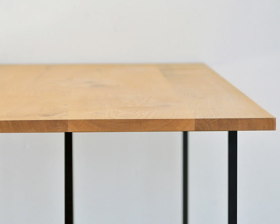 Landscape Products(ランドスケーププロダクツ)の美しいスチールロッド脚が特徴のダイニングテーブルです。 節付きのナラ無垢材の天板を使用し、無垢材の重厚感や耐久性を活かしながらも、すっきりとした印象に仕上げたダイニングテーブル。 ワイドも1500mmと二人で並んでもゆったり使うことができます。 厚めの無垢材をオイルフィニッシュで仕上げた美しい天板で、世界最高とも言われる北海道産のナラ材を使用。経年によって深みが増していく天然木本来のよさを存分に堪能することができます。 脚部分は取り外しが可能な構造になっていて、移動や引っ越しなどの際にはコンパクトにする事が可能です。