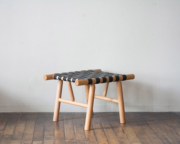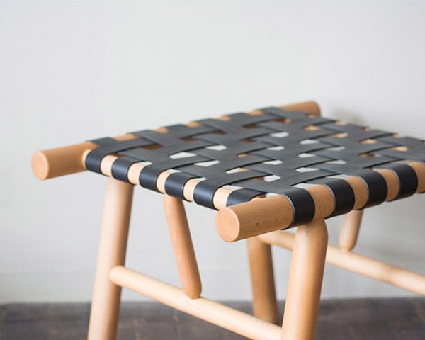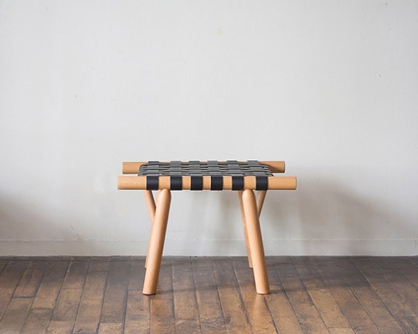 ランドスケーププロダクツが別注をかけたSPUMONI DESIGN STUDIOデザインのスツールです。 SPUMONI DESIGN STUDIOの有吉祐人氏デザインによるスツールに、ランドスケーププロダクツがレザー編み仕様にて制作を依頼しています。 透け感のある軽やかなデザインで、座面部はレザーベルトの伸縮で体に良くなじみ柔らかな座り心地が特徴です。 レザーはキャメルとブラックからお選びいただけ、木部と共に艶と風合いが増していく経年変化も楽しんでいただけます。