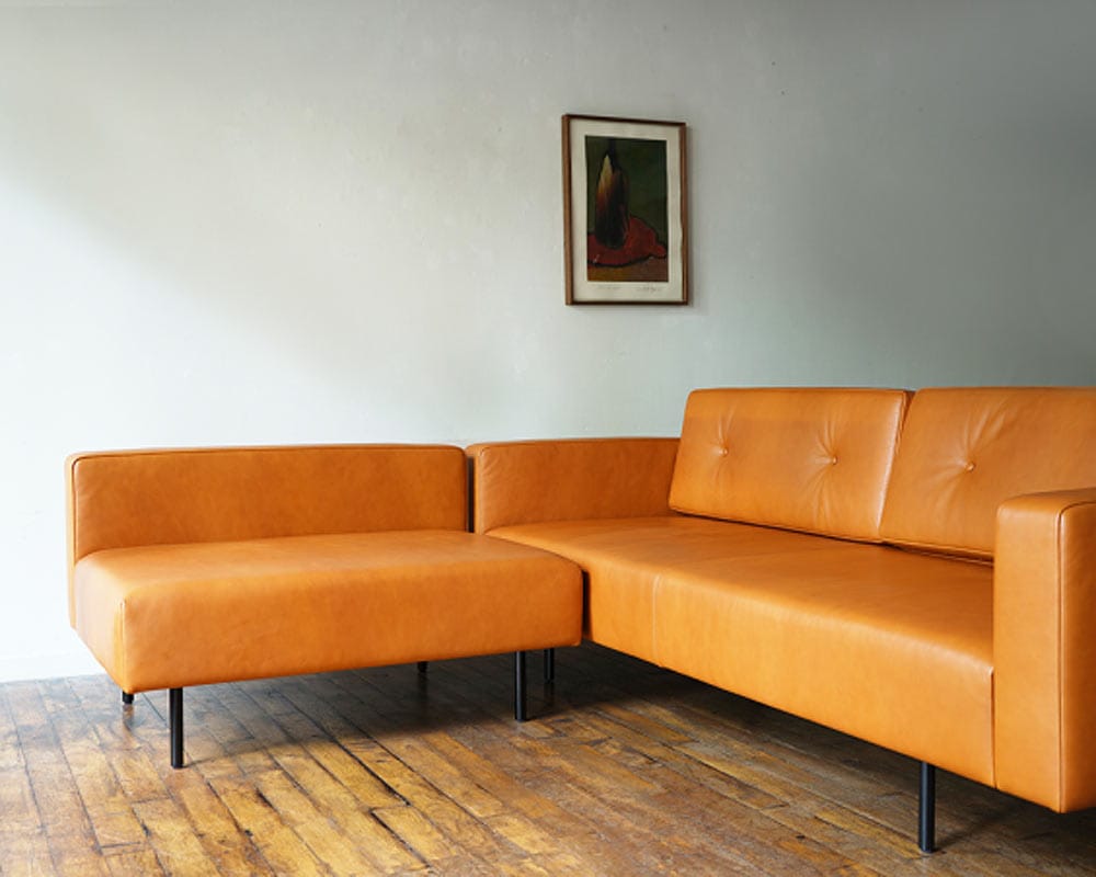 ランドスケーププロダクツ唯一のフルサイズ・アーム付きのソファ「Perch Sofa(パーチソファ)」のオットマン「Perch Ottoman(パーチオットマン)」です。 Landscape Productsで定番のアーム付きソファPerch Sofaに合わせたオットマンです。 L字に組んだり、向かい合わせに配置したりと、組み合わせ方は自由です。 オットマンにPerch Sofaのアームと同じ高さで背を付けたデザインが、組み合わせて使用することで斬新なイメージに仕上がっています。 レザー以外にもキャンバスや他の生地で制作する事も可能です。お気軽にお問い合わせ下さい。