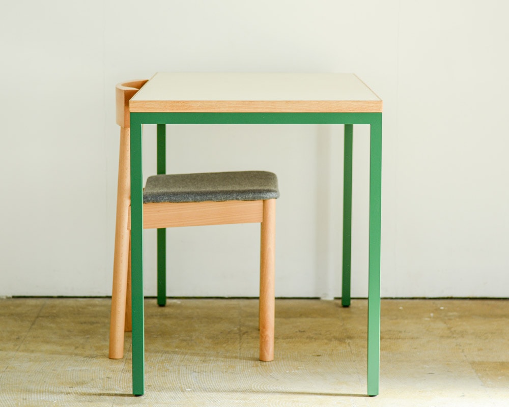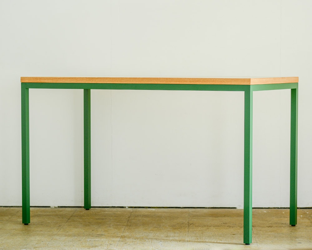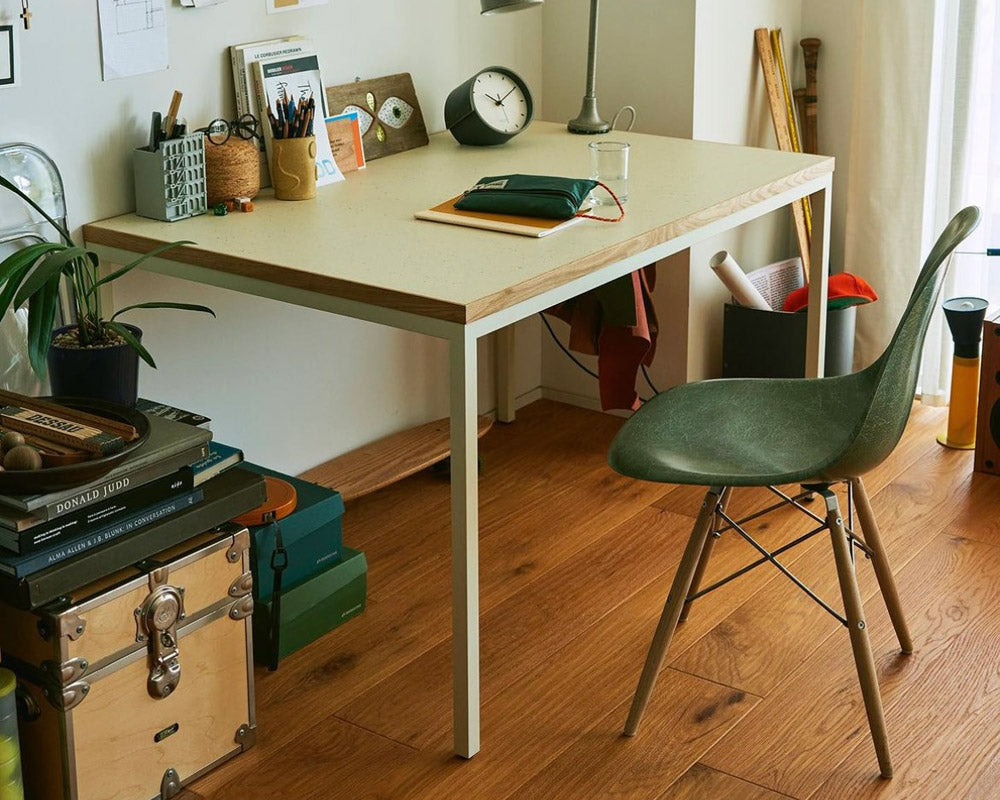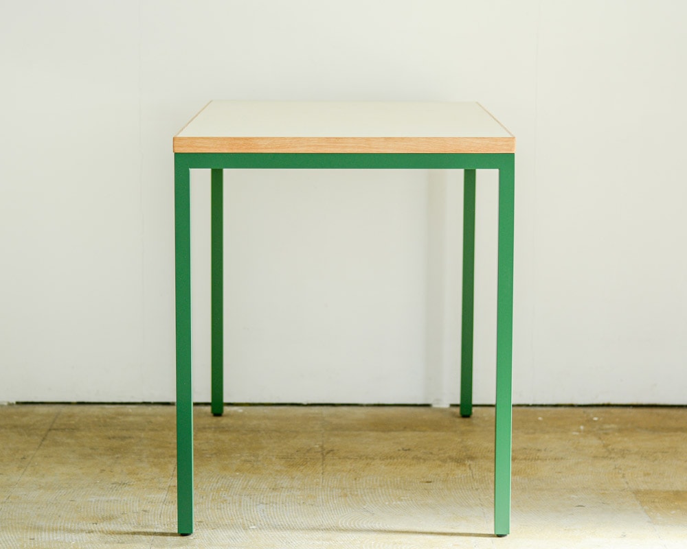 ランドスケープの「Tights(タイツ)シリーズ」のダイニングテーブルのコンパクトなデスクタイプです。 直線のみのとてもシンプルなデザインで空間をきれいに見せてくれるダイニングテーブルとして定番のTights Dining Table/タイツダイニングテーブルのデスクタイプです。サイズは幅1200 x 奥行600 mmと小ぶりなテーブルですが、お一人での作業にはちょうどよいサイズ感となります。 天板はマーモリウム白天板を使用しています。マーモリウムはAlvar Aalto/アルバー・アアルトやMagnus Olesen/マグナス・オルセンをはじめ世界中の様々なデザイナーに使用されたことで知られる天然素材のリノリウム。その一種で床材でもあるマーモリウムの可塑性に着目したプロダクトで、その経年の変化にも着目してしまう素材です。 また、強度は確保しつつ、より細く仕上げた脚部はアジャスターが付いていますので、多少の床の凹凸に対応できます。シンプルな構造と直線的なフォルムがありそうでなかったモダンなダイニングテーブルです。 お好みにより無垢の天板や突板もお選びいただけます。脚の色やサイズの変更などのご指定も可能ですので、気兼ねなくお問い合わせください。