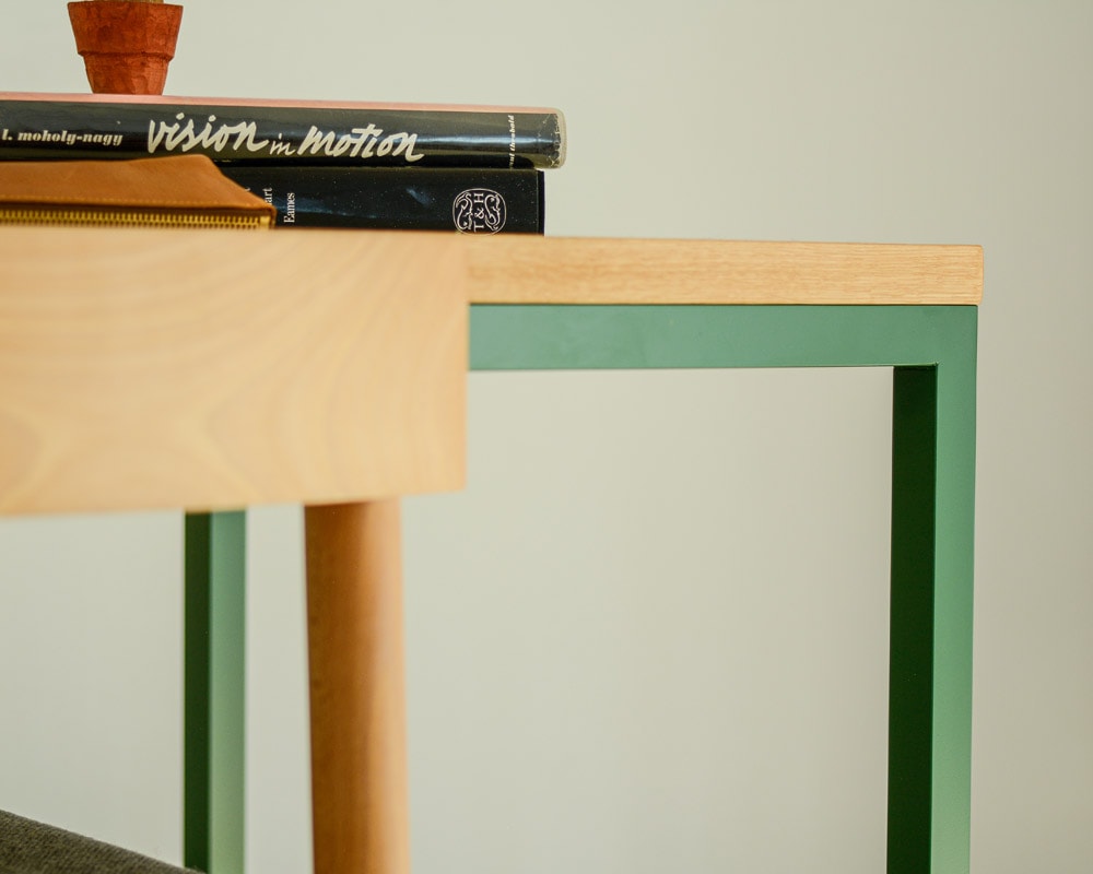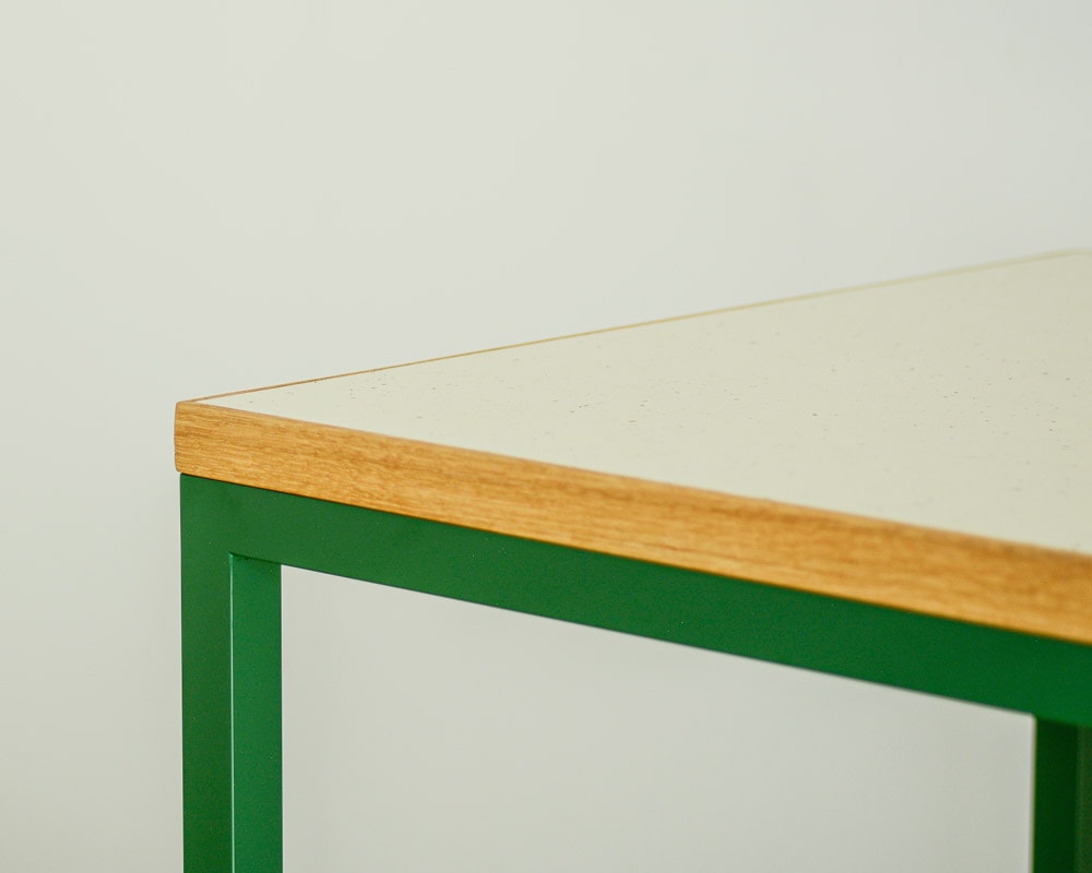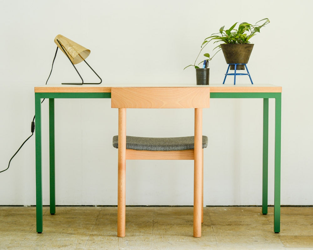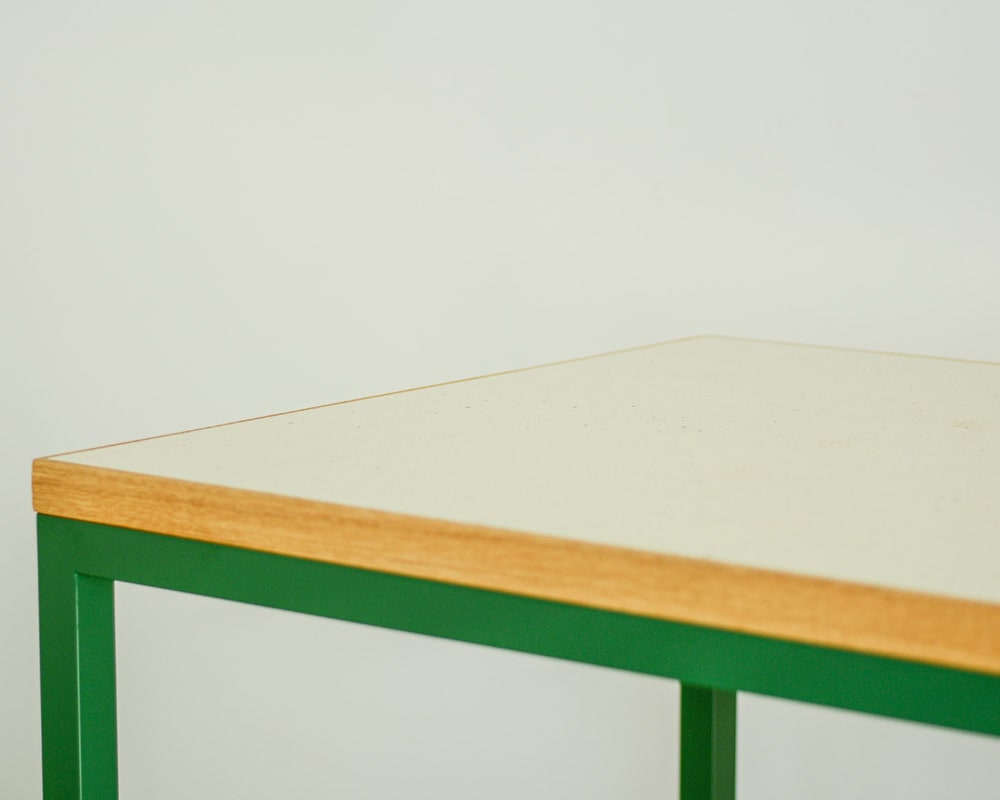 ランドスケープの「Tights(タイツ)シリーズ」のダイニングテーブルのコンパクトなデスクタイプです。 直線のみのとてもシンプルなデザインで空間をきれいに見せてくれるダイニングテーブルとして定番のTights Dining Table/タイツダイニングテーブルのデスクタイプです。サイズは幅1200 x 奥行600 mmと小ぶりなテーブルですが、お一人での作業にはちょうどよいサイズ感となります。 天板はマーモリウム白天板を使用しています。マーモリウムはAlvar Aalto/アルバー・アアルトやMagnus Olesen/マグナス・オルセンをはじめ世界中の様々なデザイナーに使用されたことで知られる天然素材のリノリウム。その一種で床材でもあるマーモリウムの可塑性に着目したプロダクトで、その経年の変化にも着目してしまう素材です。 また、強度は確保しつつ、より細く仕上げた脚部はアジャスターが付いていますので、多少の床の凹凸に対応できます。シンプルな構造と直線的なフォルムがありそうでなかったモダンなダイニングテーブルです。 お好みにより無垢の天板や突板もお選びいただけます。脚の色やサイズの変更などのご指定も可能ですので、気兼ねなくお問い合わせください。