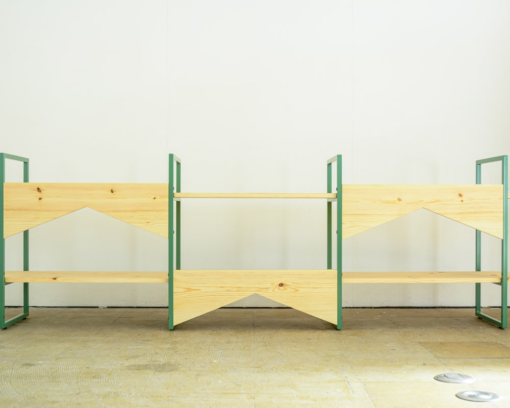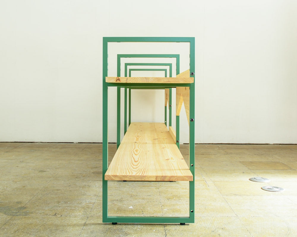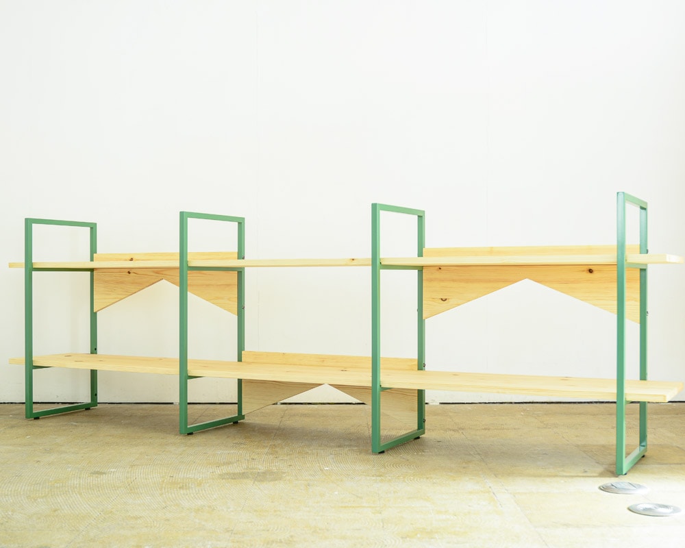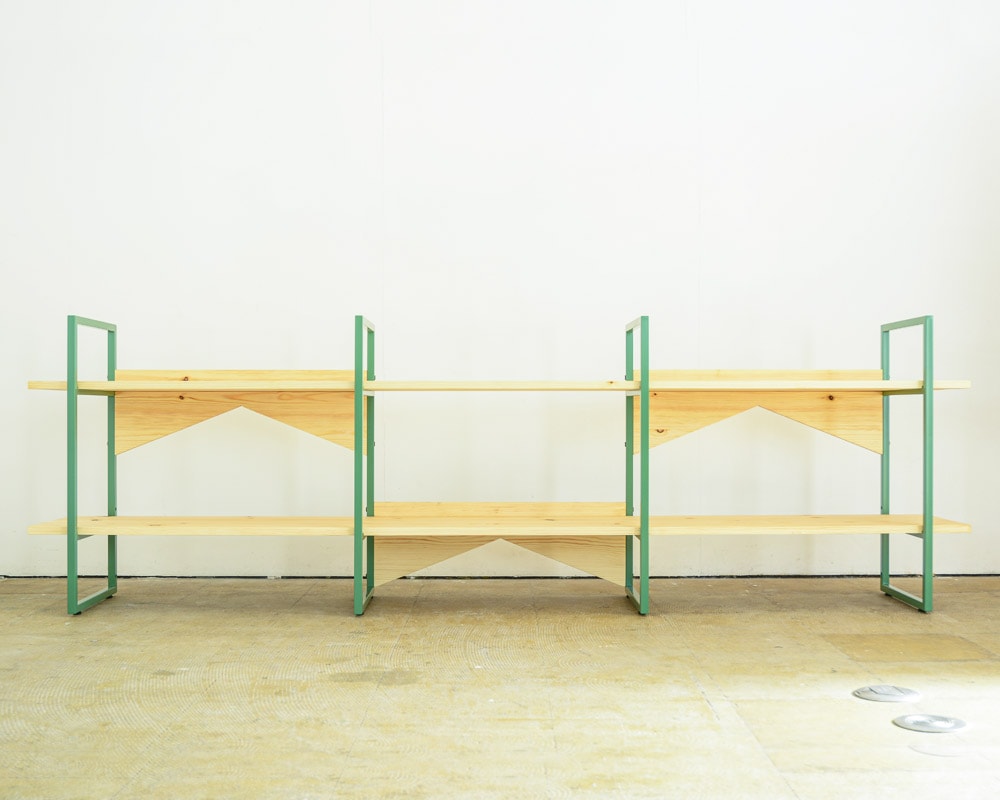 ランドスケープの「Tights(タイツ)シリーズ」のブックシェルフの連結型になります。 シンプルな直線で構成するTightsシリーズのブックシェルフ連結型です。 棚板を長く延長させ、低く保ち空間を圧迫しない棚ですので、お部屋の間仕切りとしてもお使いいただけます。 奥行きは狭い空間にも納まるようにしており、飾り棚としてもお使い頂けます。 側面から見ると、矩形の金物が連続する美しさがあります。 脚の色やサイズの変更などのご指定も可能ですので、気兼ねなくお問い合わせください。