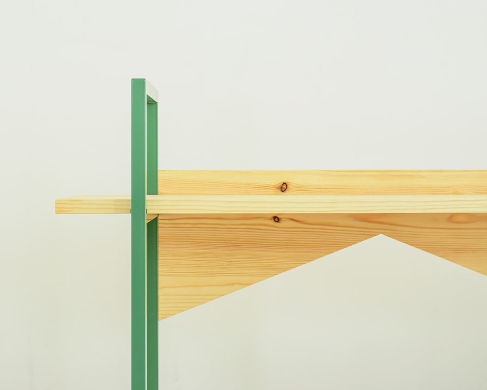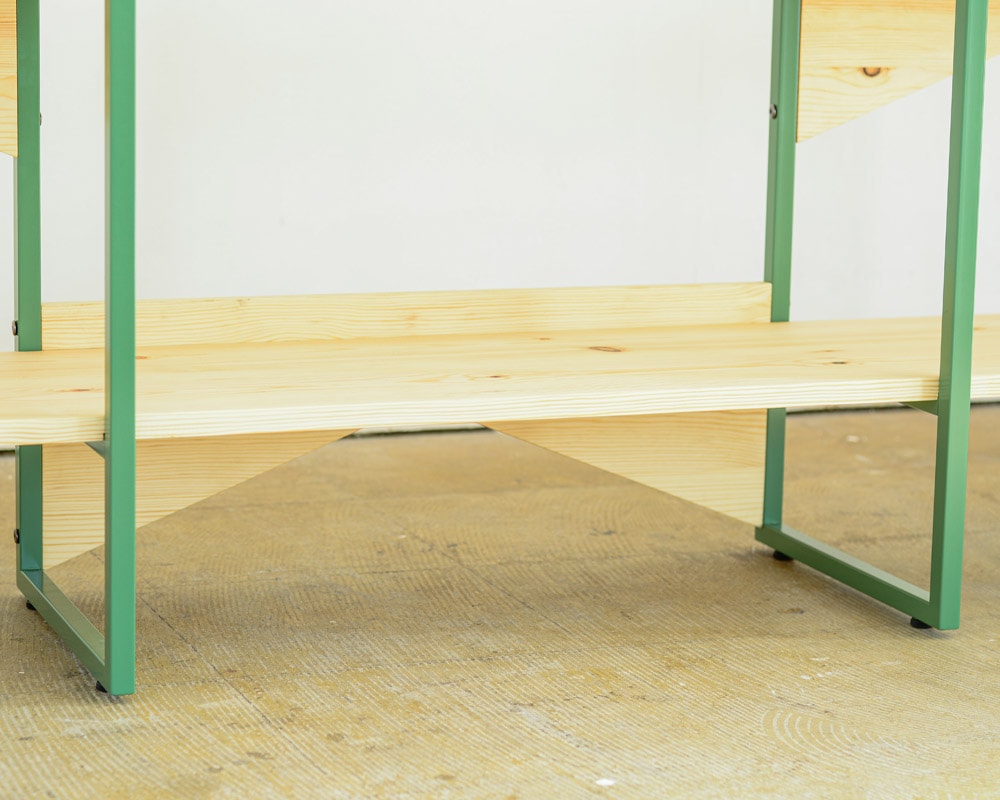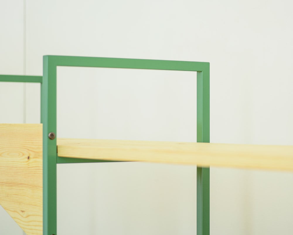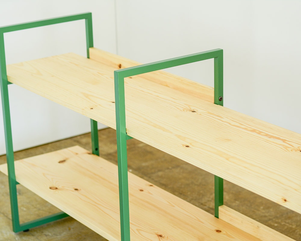 ランドスケープの「Tights(タイツ)シリーズ」のブックシェルフの連結型になります。 シンプルな直線で構成するTightsシリーズのブックシェルフ連結型です。 棚板を長く延長させ、低く保ち空間を圧迫しない棚ですので、お部屋の間仕切りとしてもお使いいただけます。 奥行きは狭い空間にも納まるようにしており、飾り棚としてもお使い頂けます。 側面から見ると、矩形の金物が連続する美しさがあります。 脚の色やサイズの変更などのご指定も可能ですので、気兼ねなくお問い合わせください。