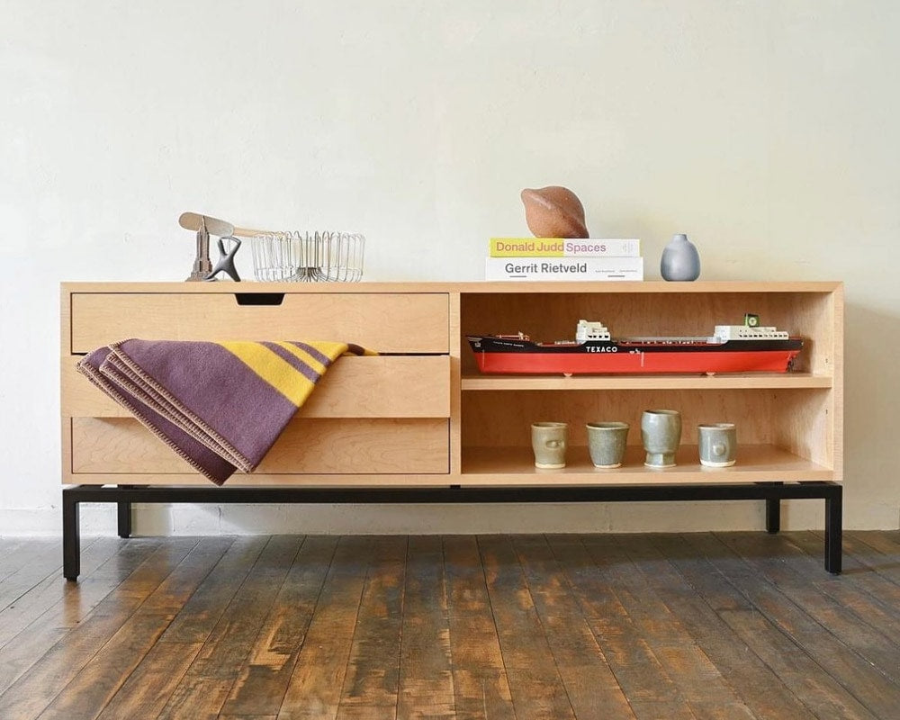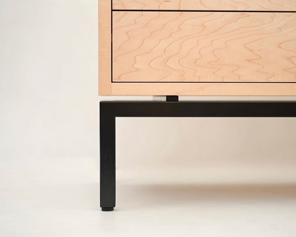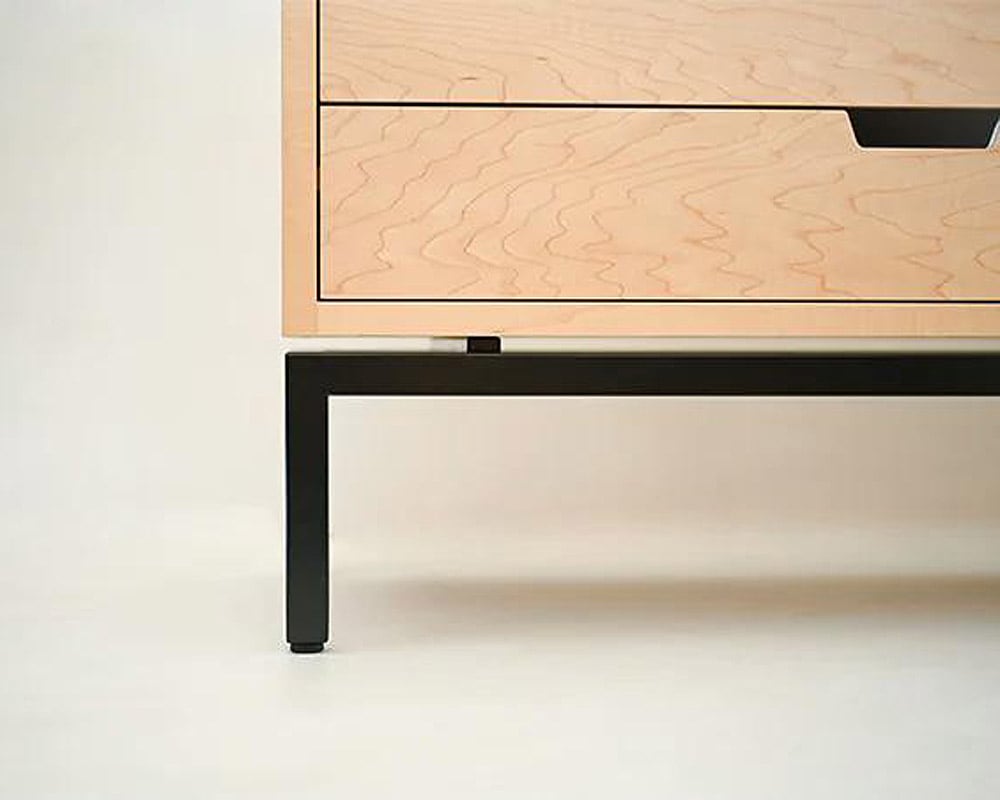 ランドスケーププロダクツの創業以来作られている定番のシステムキャビネット「High & Low System Cabinet(ハイアンドローキャビネット)」がリニューアルし新タイプにアップグレードされました。 ランドスケーププロダクツ定番の収納家具であるHigh&Low Seriesシリーズです。 ミッドセンチュリー期のキャビネットからイメージし、日本の住空間に合わせやすいようデザインされています。 この新タイプは本体をスチールの脚部から少し浮かせることで、キャビネットに軽やかさを加えています。 棚板は3段階の可動式なので、収納する物に合わせて高さ調整が可能です。 引き出し前板には積層合板を使用し、引き出しを引いた時の印象にもこだわっています。 空間や用途に合わせて製作が可能となっており、黒色の角パイプの脚により空間をすっきりと見せてくれるのが特徴です。 木材の種類をお選びしていただけるのはもちろんのこと、様々なサイズや仕様が製作可能になっています。 日本の経験豊かな家具職人により1点1点手作業で生産されます。 ※写真イメージはひとつの製作例となっております。その他のタイプも製作できますので、お気軽にお問い合わせください。
