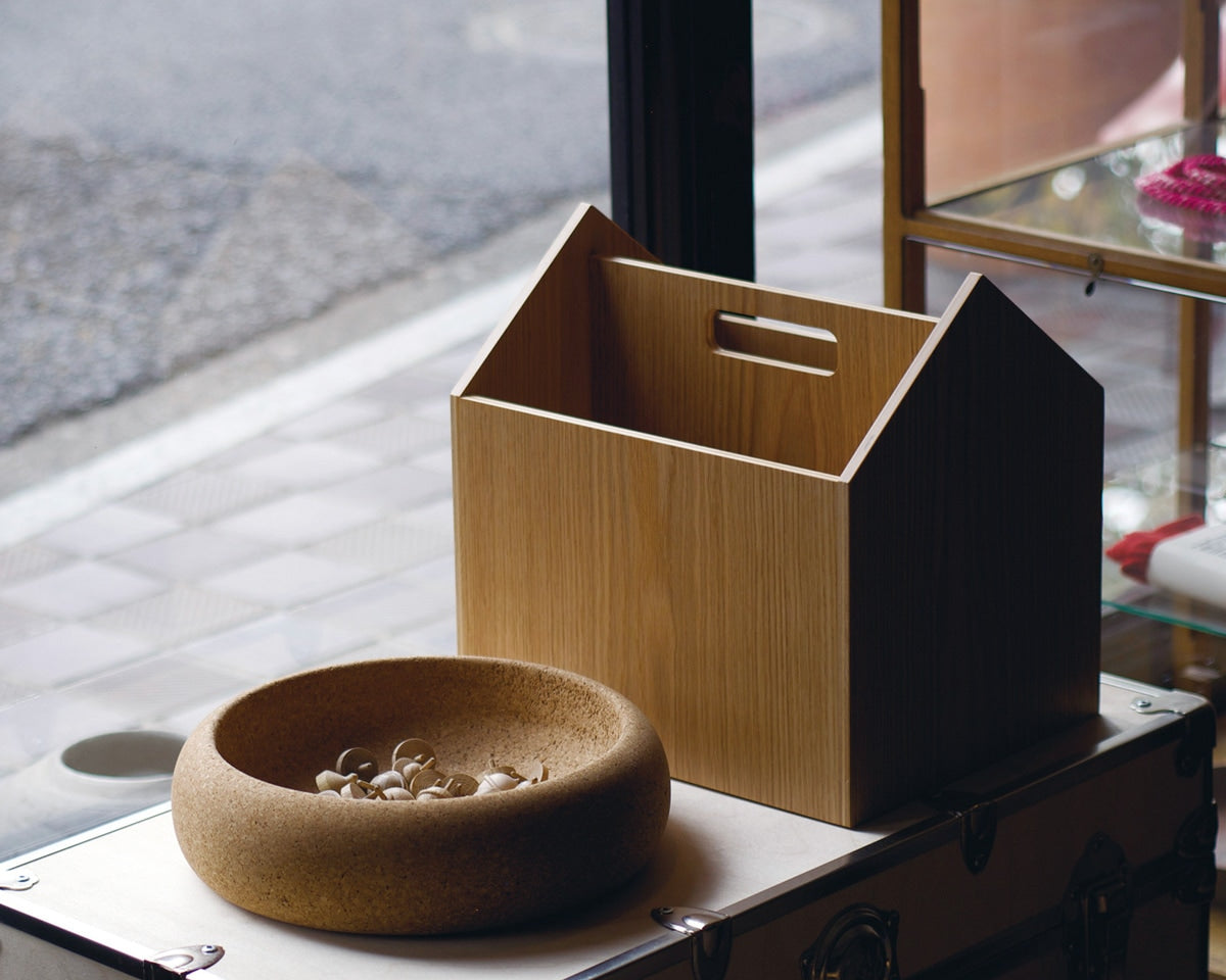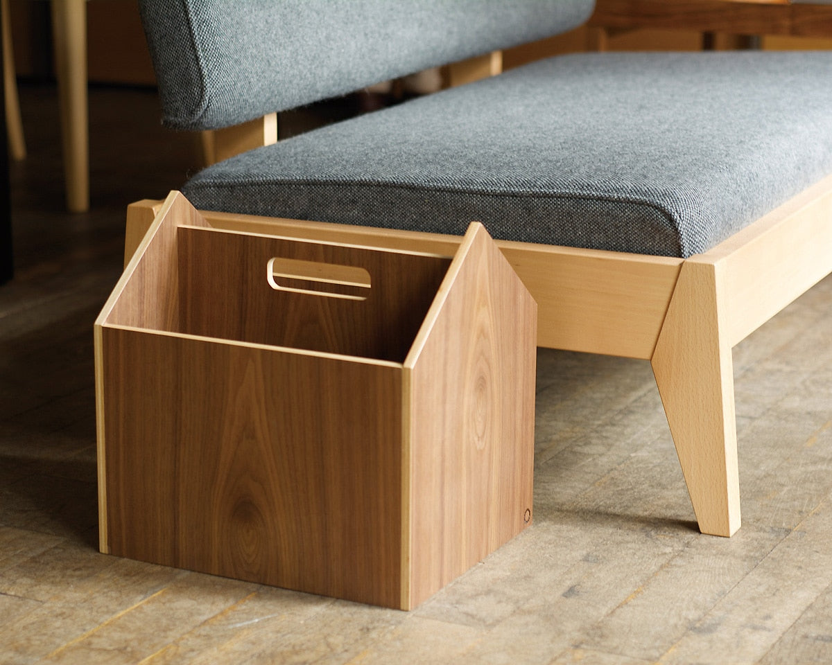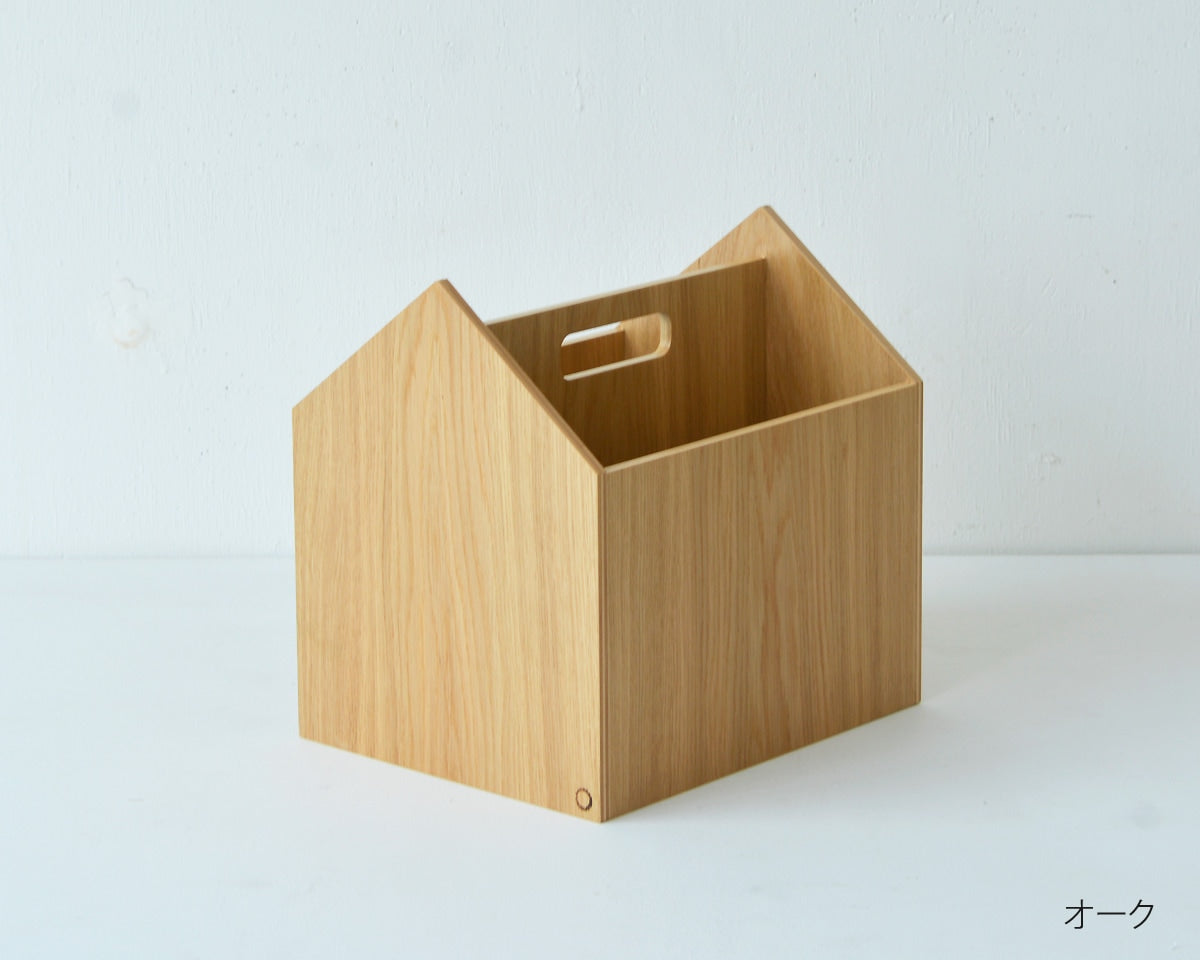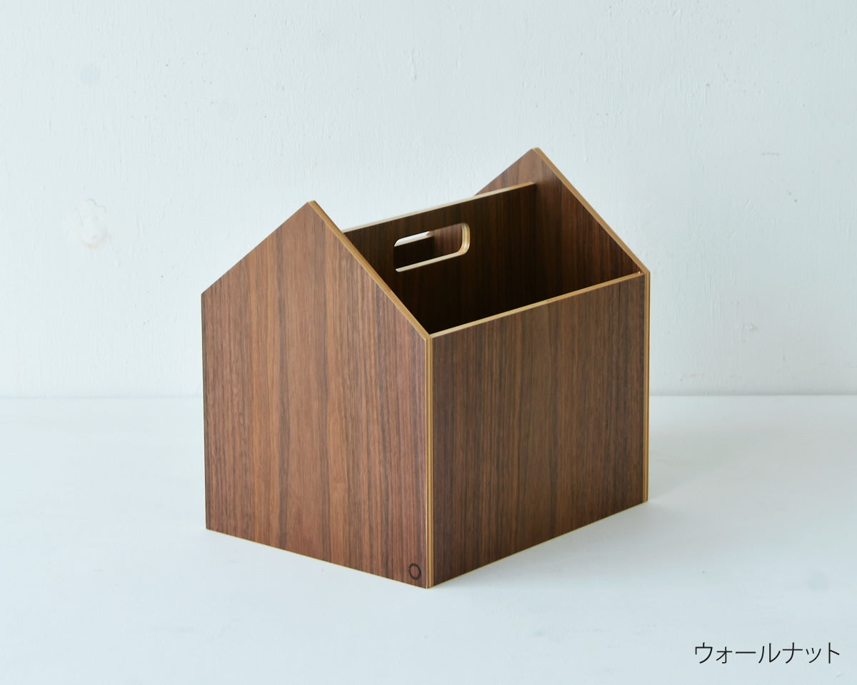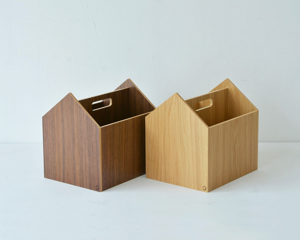 ランドスケーププロダクツの積層合板を使った家のカタチをモチーフにしたマガジンラック「HOUSE BOOK STAND(ハウス ブックスタンド)」です。 家のかたちをモチーフにしたブックスタンドは、床やキャビネットの上など置く場所で様々な表情を見せてくれます。 容量も大きく、真ん中に持ち手も付いているので持ち運びに便利。さらに新型は内側までウォールナットの突板を貼っていて、高級感もアップ。 こんなミニマルなフォルムのブックスタンド、探すとあまりないのですよね。 表面の突き板は「オーク」「ウォールナット」の2種類をご用意しておりますので、お部屋の雰囲気に合わせてお選びいただけます。