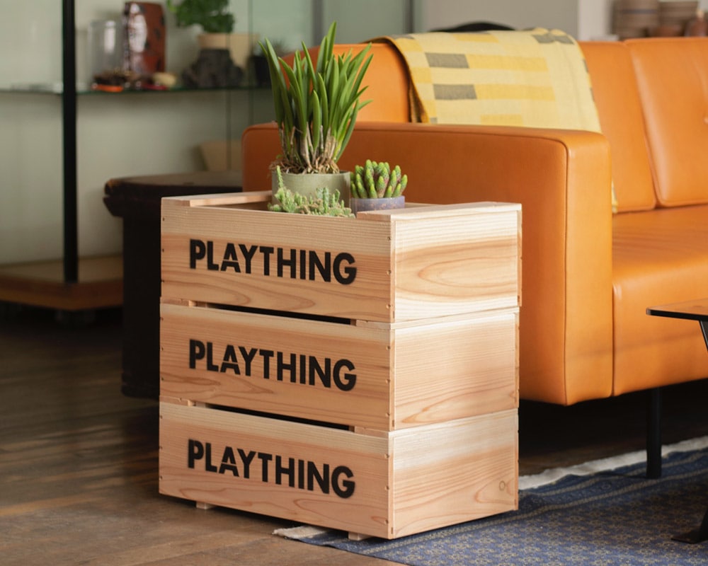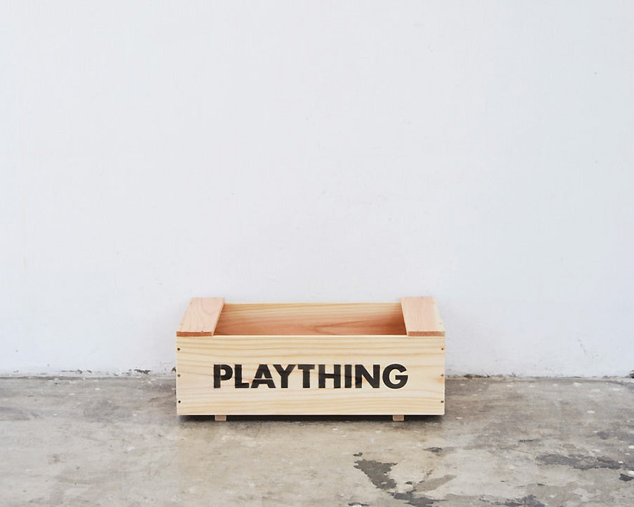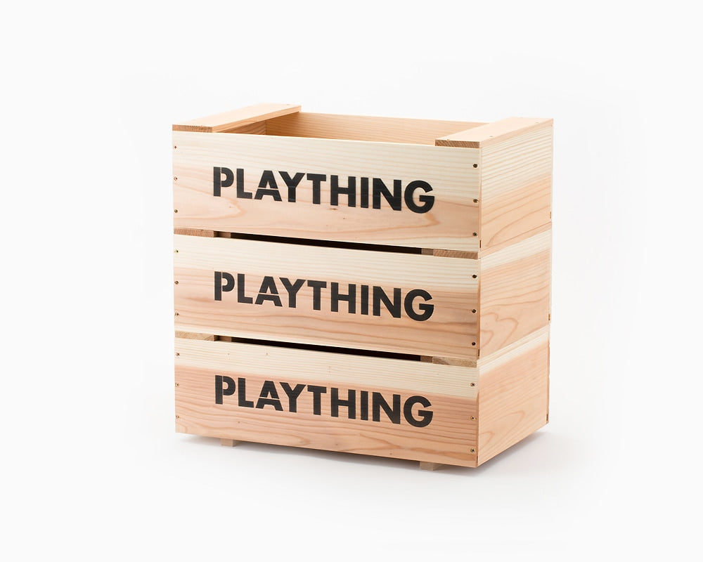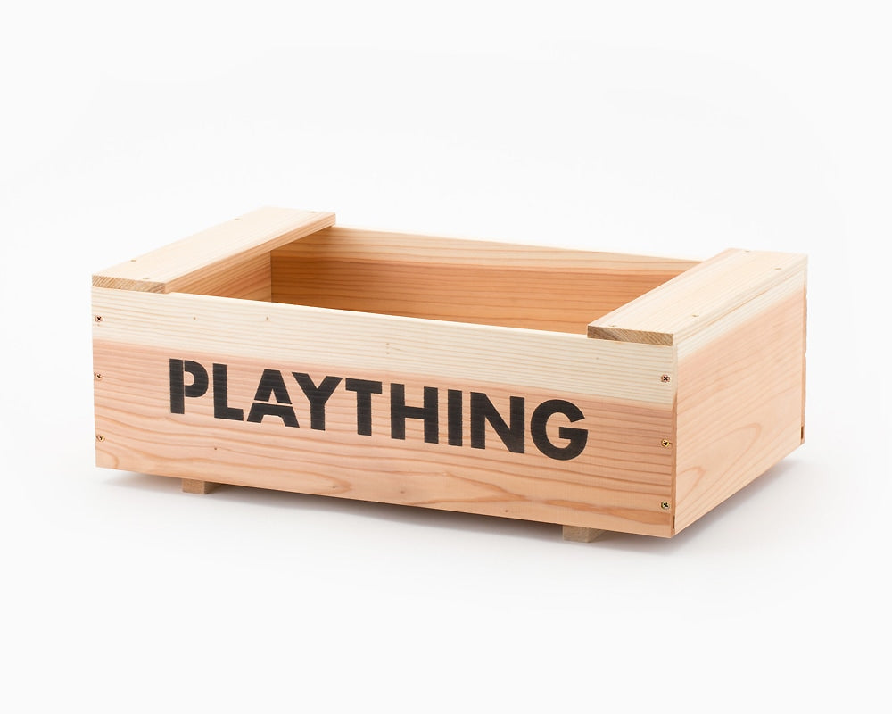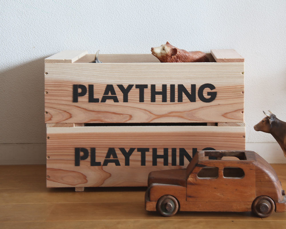 ランドスケーププロダクツのスタッキングトイボックスです。 シダー(杉材)の表情の柔らかさを活かしたシンプルなおもちゃ箱はスタッキングもできるとても便利な構造も特徴です。 収納用具としても幅広く使いことが可能で、ほどよい大きさも用途をさらに広げてくれます。 側面にはPLAYTHINGの文字がステンシルで入ります。
