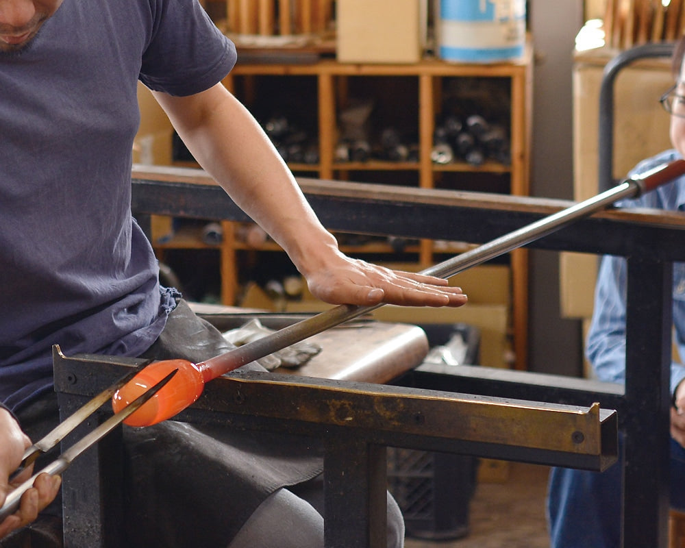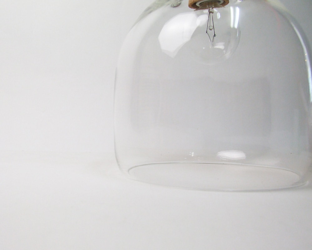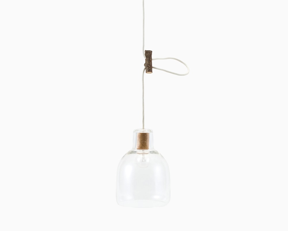 ランドスケーププロダクツのボトルをイメージし手吹きガラスで作られたペンダントランプです。 Cheese Dome、 Milk Bottleなど様々なグラスウェアを発表してきた、Landscape ProductsとStudio Prepaによるブランド「PP BLOWER」シリーズのランプ。 Bottle Lampと名付けた新しい照明は、少しだけ裾がすぼまった形状や、ボトルの栓のようなコルクのブラケットカバーなど、ガラスのボトルを連想させるディテールです。 コードはレッドとホワイトの2色をご用意。木の枝をそのまま利用したアジャスターが付属しています。 ぽってりと下部が内側へ丸まったフォルムは、型を使用した成形では不可能な、手吹きでのみ作ることができるフォルムです。熟練の吹きガラス職人高い技術力なしには完成しないこだわりの照明です。