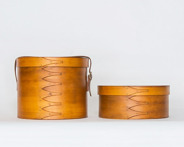 ランドスケーププロダクツとまる工芸との協働により生まれた「Circle BOX(サークルボックス)」です。 飛騨を拠点として活動する「Maru Kougei/まる工芸」の手仕事で生産された、ランドスケーププロダクツ別注の美しいボックスです。 通常のオーバルボックスよりも収納力があり、衣類や小物はもちろん、MediumとLargeサイズはレザーベルト付きで、ワイングラスなども収納可能です。 端部の接合部には真鍮のリベットを使用するなどシェーカーボックスの意匠が生かされています。フレームは薄く仕上げられた木を92℃の蒸気で蒸して曲げて作られていて、丁寧な手作業により非常に完成度の高い仕上がり。 飛騨高山の木工芸職人、大澤昌史氏の細部にいたるまで美しい仕上げは、ついつい見とれてしまう仕上がりです。 [まる工芸 大澤昌史] 丸太の製材から制作までを一貫して自ら行う大澤氏。 広葉樹を蒸気を用いた曲げ木の技法で型にいれて真鍮の釘で止める。 その際に浮き上がらないように施す「スワローテイル」と呼ばれる接合部は、一つ一つ小刀で細かく切り出しています。 大澤氏の丁寧で美しい制作技術が詰まっている作品です。