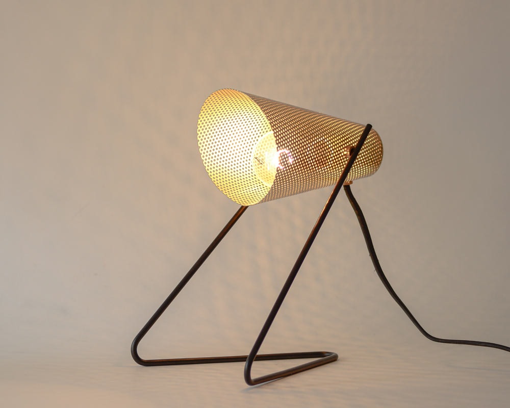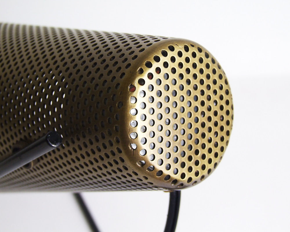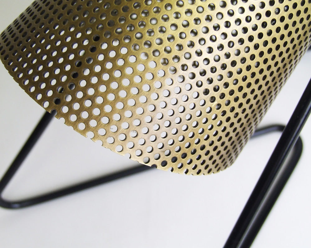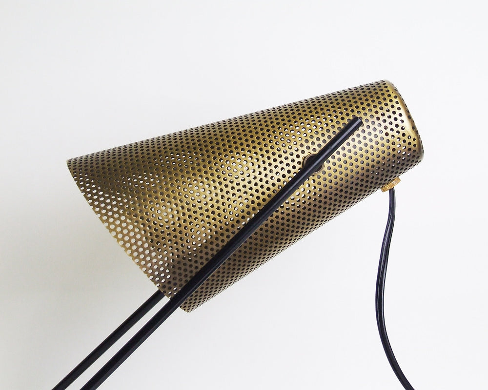 LAを拠点にデザイン活動をする「commune(コミューン)」と「Atelier de Troupe(アトリエ・ド・トループ)」との共作による照明器具「V-LITE(Vライト)」です。置き方によって、テーブルランプとしても、またウォールランプとしても使える照明器具です。ランプを灯すとパンチングメタルのシェードを通して、リズミカルな影を生み出し、まるでアトリエやホテルの一室のような雰囲気を楽しめます。「Atelier de Troupe(アトリエ・ド・トループ)」はLAを拠点とするデザイン集団「commune(コミューン)」の依頼で「ACE HOTEL(エース・ホテル)」の照明を手掛けたことで、現在世界的に注目されているデザインスタジオです。このV-LITEは「Atelier de Troupe」がLAの工房で全てを手作業で作り上げています。人の手で作られた独特の暖かみのある仕上がりがお部屋をより暖かみのある空間へを変えてくれます。商品には壁付け用の真鍮無垢のボールフックが付属し、そのフックを壁に取り付けV-LITEを掛けることで壁面照明にもなります。