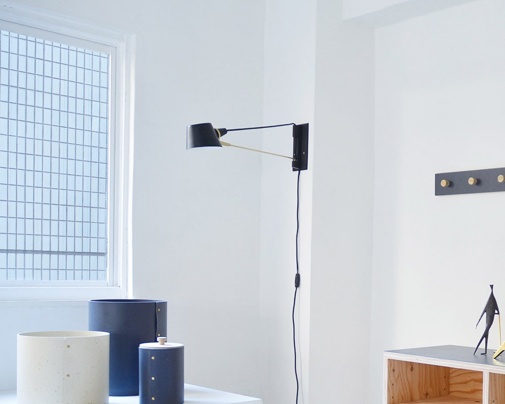 カリフォルニア州ロサンゼルスを拠点とするBrendan Ravenhill/ブレンダン ラベンヒルの壁付け照明「PIVOT SCONCE 」です。 Brendan Ravenhill/ブレンダン ラベンヒルは、2010年創業の照明、家具、プロダクトデザインを手掛けるデザインスタジオです。L.Aのスタジオでデザインし、加工から塗装まですべて手作業でアメリカ国内で生産されています。 この壁付けのデスクランプのようなデザインは、左右に自由にスイングする事ができ、またシェードは光の欲しい向きに動かせるので、アイデア次第で非常にスマートにかつ機能的にお使いいただけます。 例えばダイニングキッチンでは、料理時の手元ランプとして、料理ができあがると動かしてダイニングテーブル上にと・・・ダイニングのみならず、玄関、デスクスペースなど幅広いシチュエーションでの使用が可能です。 「SCONCE」とは燭台の意味で、ブラスのアームでシェードを支えるシンプルで無駄のない美しい構造は、インテリアを引き締めるアクセントに最適なウォールブラケットランプです。 Selected by Landscape Products