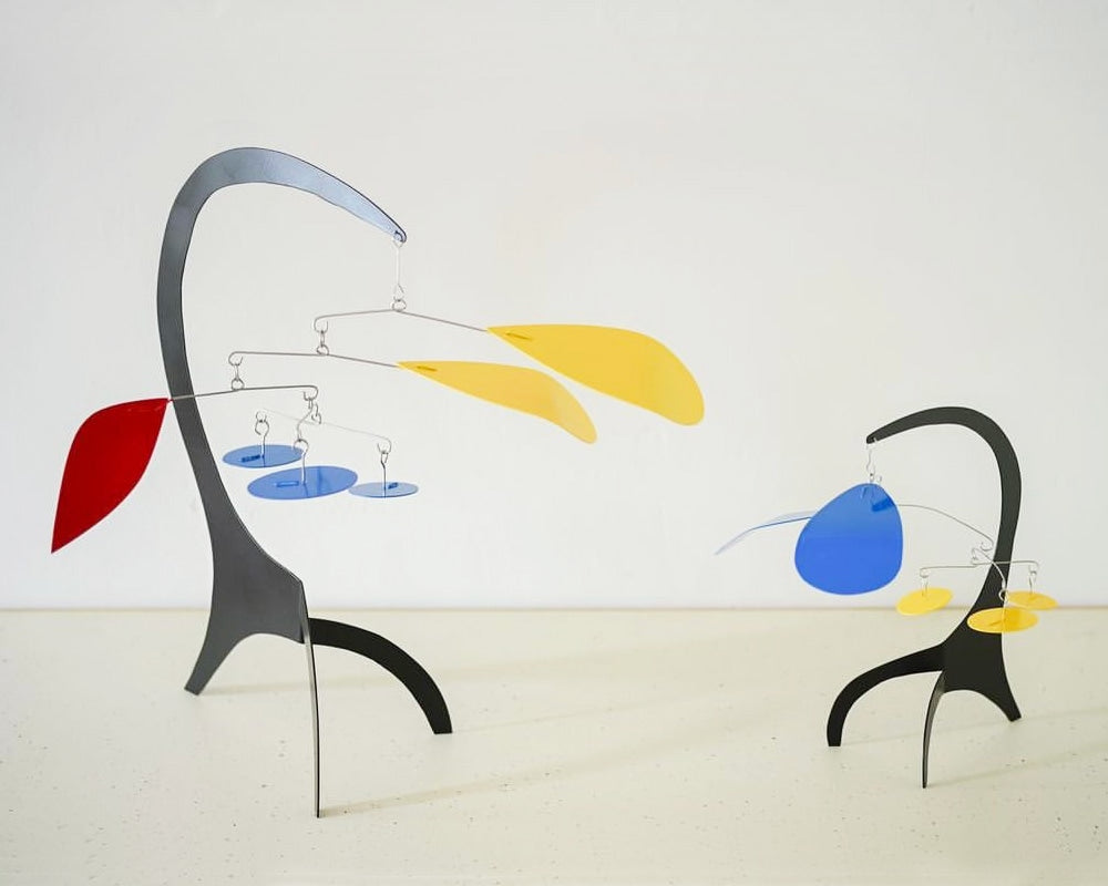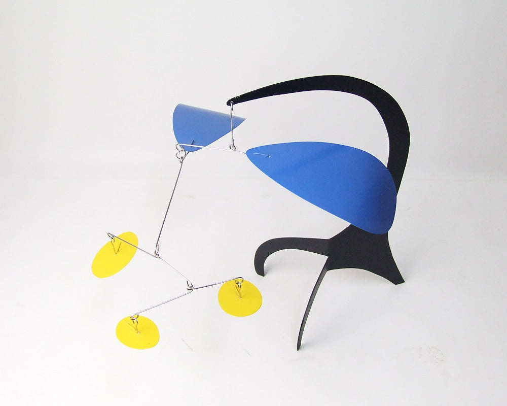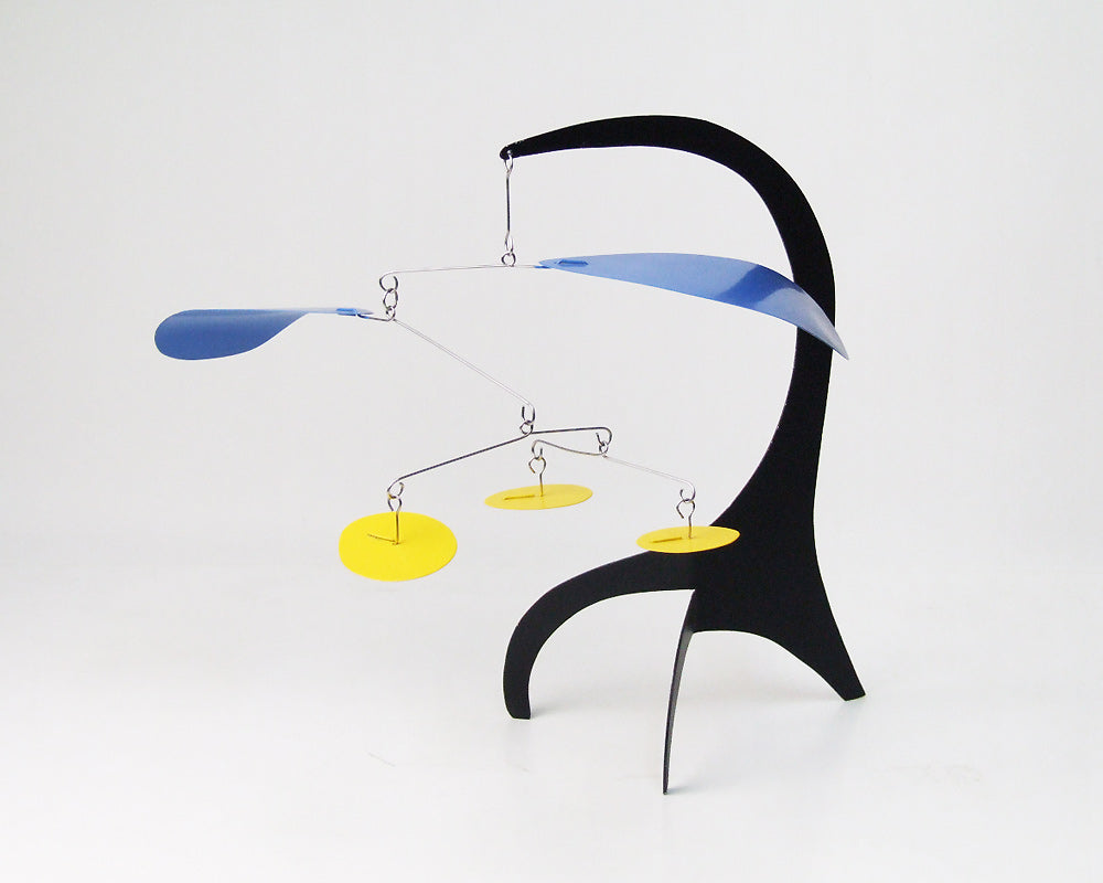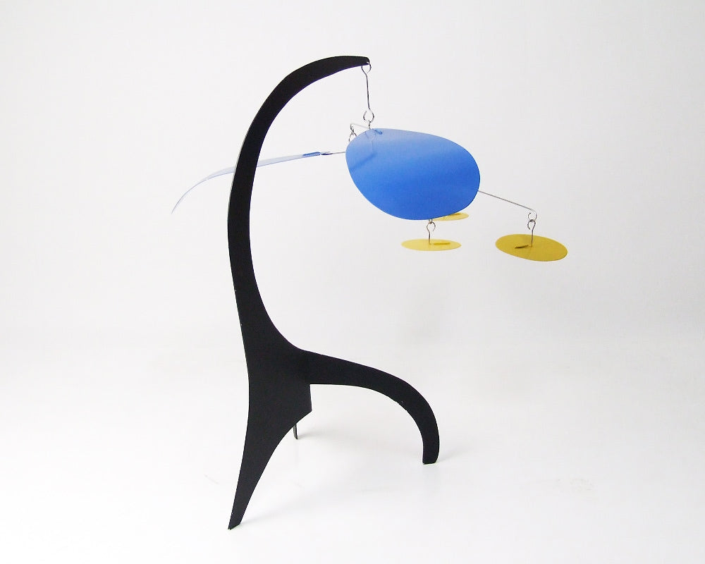 Dave Vande Vusse(デイブ・バンデ・ヴ−ス)のハンドメイドで作られるスタンディングモビールです。モビールといえばつり下げるハンギングモビールが主流ですが、この商品はデスクやテーブルの上に置くことの出来る、置き型のモダンなモビールです。デイブ・バンデ・ヴ−スはアレキサンダー・カルダーにインスパイアされ、アメリカ・ミシガン州で40年もの間、モビールを作り続けています。彼は熟練した技術をもって、空気の微妙な流れにより、不規則に旋回する美しいモビールをハンドメイドで製作しています。このデスクトップサイズは、小ぶりでデスクやテーブル上を飾るのに最適で、僅かな風によって動く様はお部屋のモダンなオブジェになってくれます。