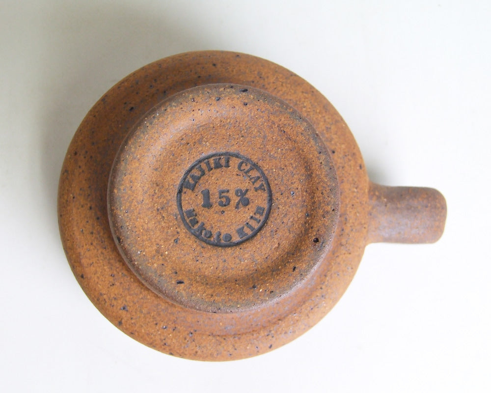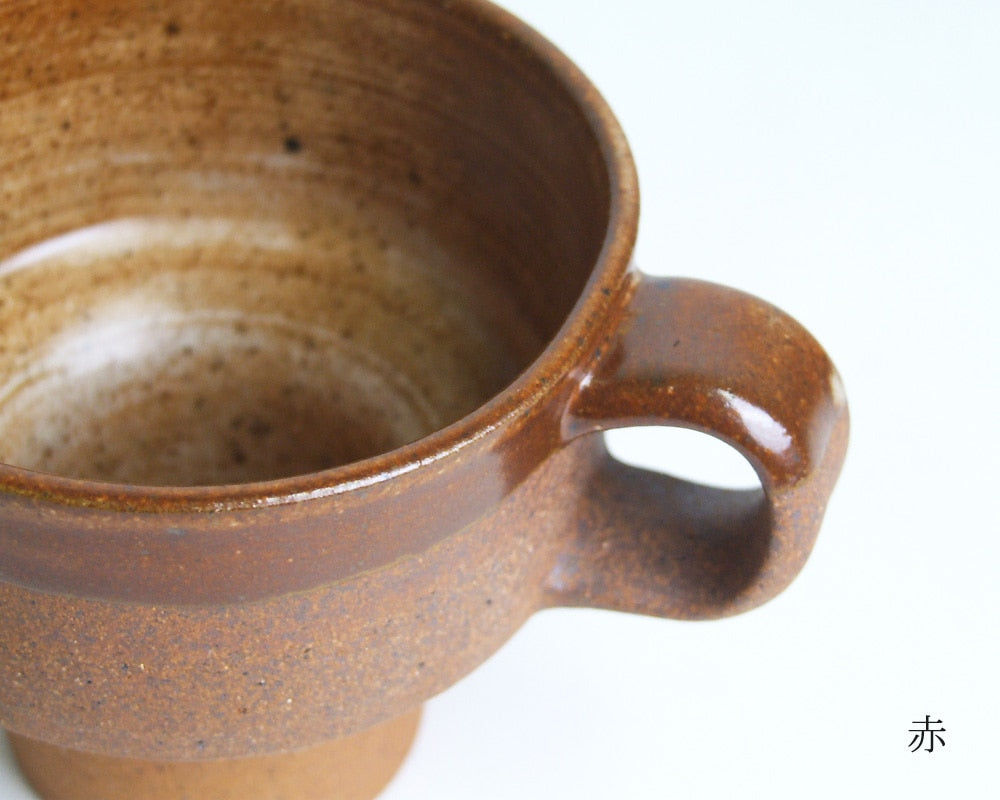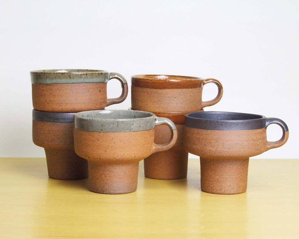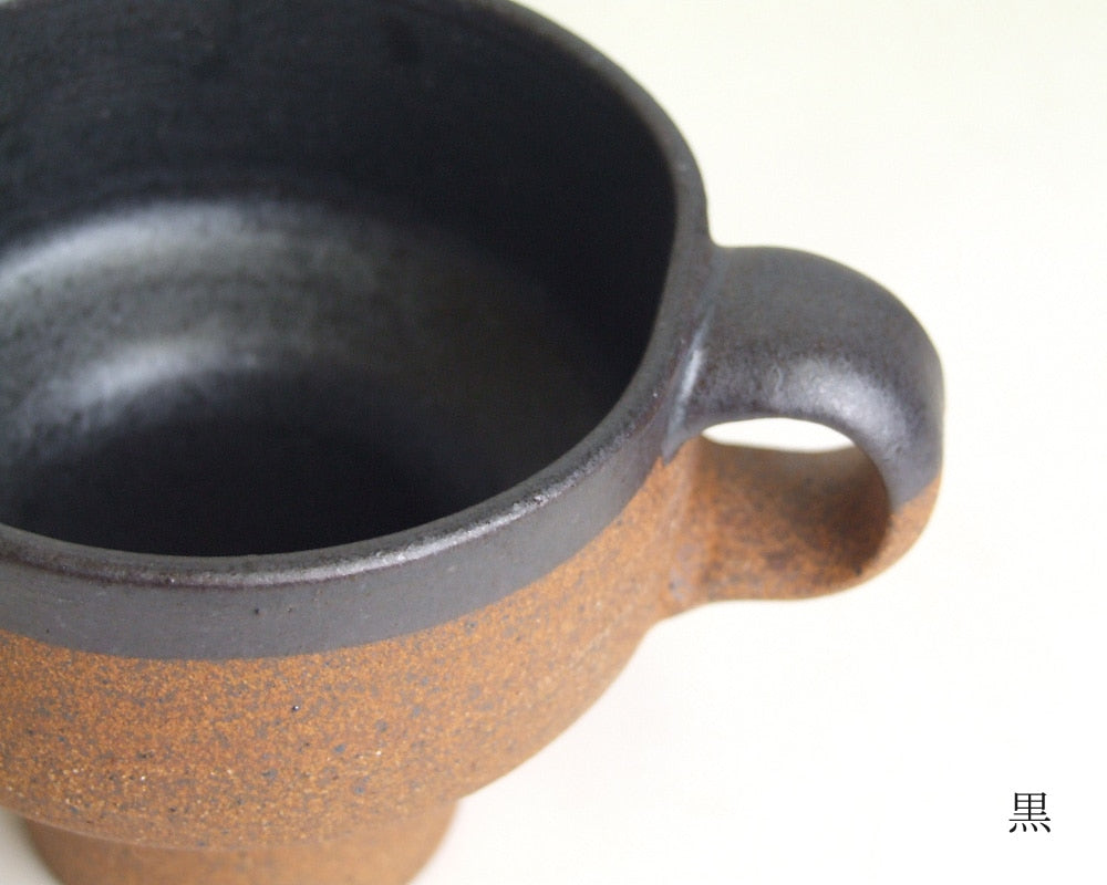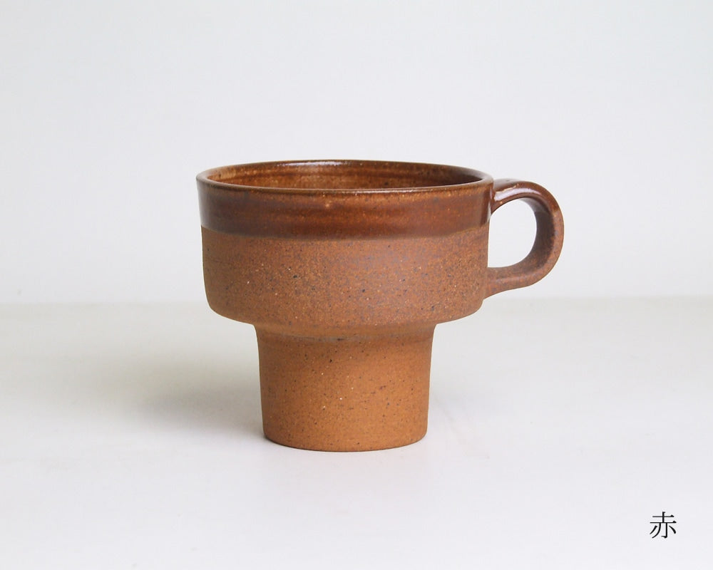 鹿児島の加治木地方で手作りの器を作陶している「眞窯(まことがま)」の「KAJIKI CLAY」シリーズのマグカップ。 薩摩焼の発祥地でもある加治木町。 その加治木町の鉄分を豊富に含んだ粘土は、収縮率が高くとても単体で使える土ではありませんでした。 試行錯誤の上、15%の加治木粘土と他の産地の粘土とを調合することで、加治木粘土の特徴である強い鉄分が、還元焼成による窯変で、独特の美しい仕上がりの陶器へと焼き上がりました。 美しく重ねて収納ができるような形状で、焼き締め部分を残すことにより土本来の素地を感じることができ、日々の生活に寄り添い優しく暖かい気持ちにさせてくれるマグカップです。