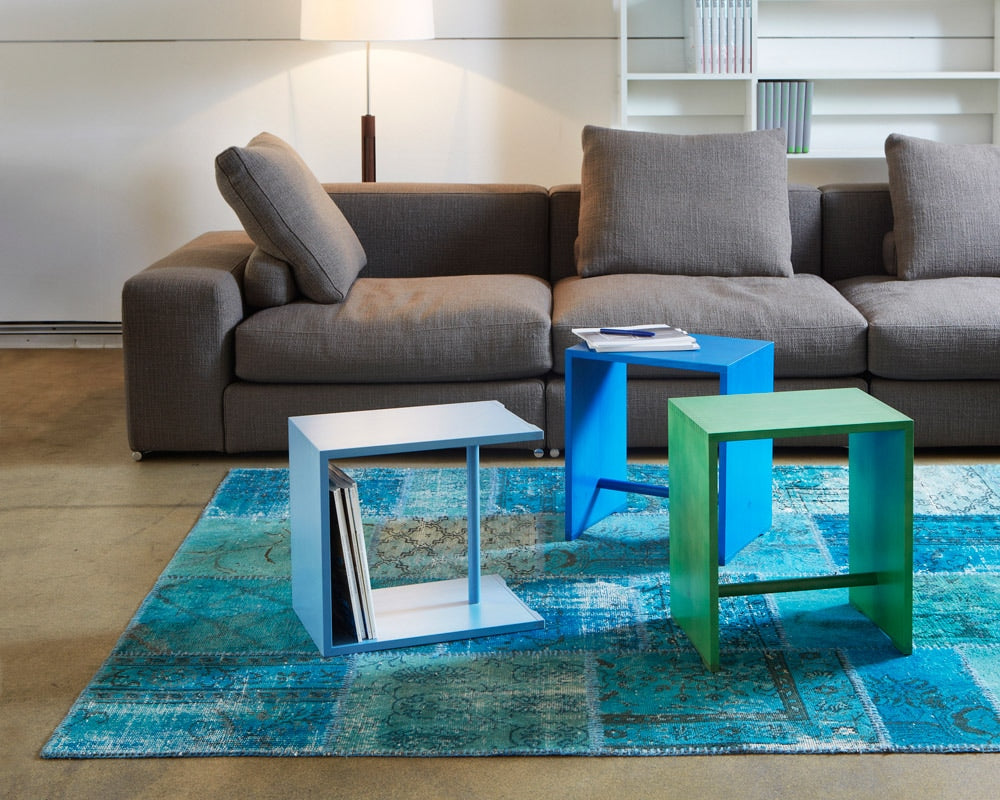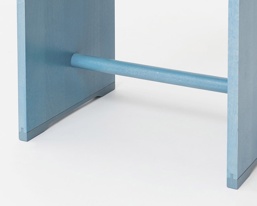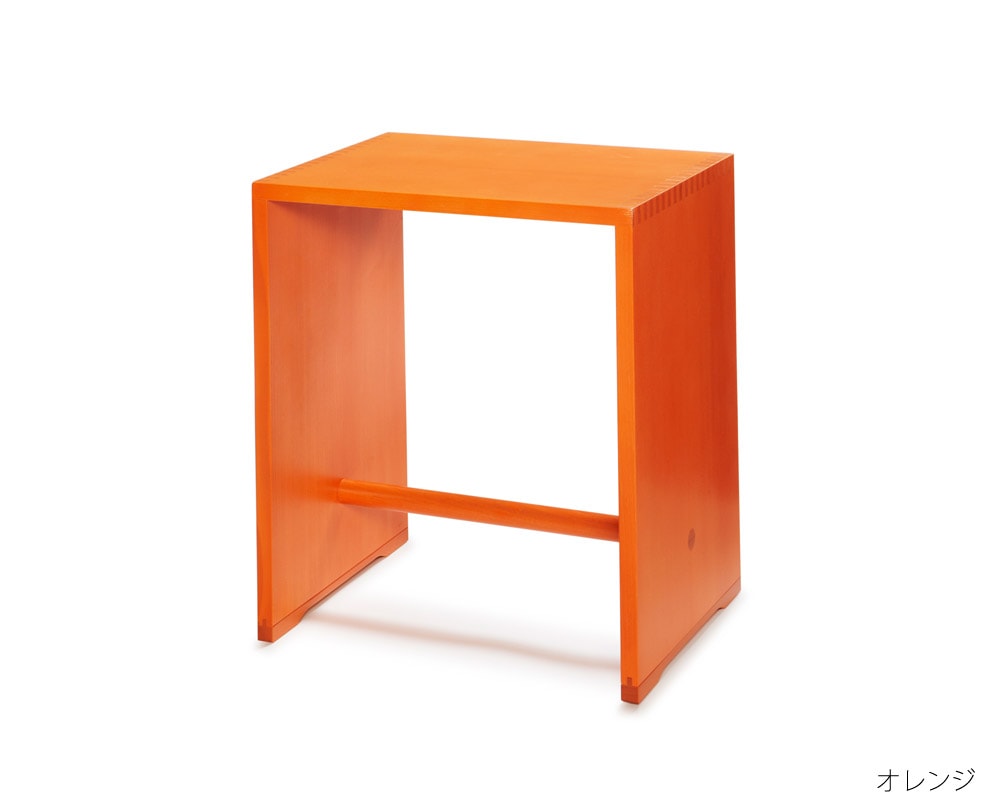 Max Bill (マックス・ビル)デザインのUlm Stool (ウルムスツール)です。1953年、旧西ドイツのウルムに開設された「ウルム造形大学」は、バウハウスの理念を継承する革新的な教育機関でした。その初代学長をつとめたマックス・ビルが、学生達のために1954年にデザインした多目的スツールです。ワークテーブルや講義、カフェテラスなどに使えるスツール、サイドテーブル、持ち歩きやすい機能に、書籍をのせるトレイとしての機能など、多目的な要素をデザインに集約し「ウルムスツール」は誕生ました。当時のウルム造形大学では、それらの機能通り、椅子としてはもちろんサイドデスクや踏み台、また横向きにしてラック、さらに逆さまにして教科書の持ち運びなど幅広い場所で使用されていました。耐久性と使い心地を両立させたこの「ウルムスツール」クギを一切使わない木組み工法で作られています。「組継ぎ」「相互矧(は)ぎ」「くさび細継ぎ」と様々な技法が使われ、強度の必要な部分には硬い材(ビーチ材)を用いるなど、細部にまでこだわって作られています。無塗装の通常モデルとは異なり、カラーモデルでは傷がつきにくいバーチの無垢材を使用。木目を活かして染色された後、クリアのウレタンで仕上げられています。無駄を極限までそぎ落としたミニマルなデザインは、バウハウスの概念をそのまま受け継いだ象徴的スツールといわれています。
