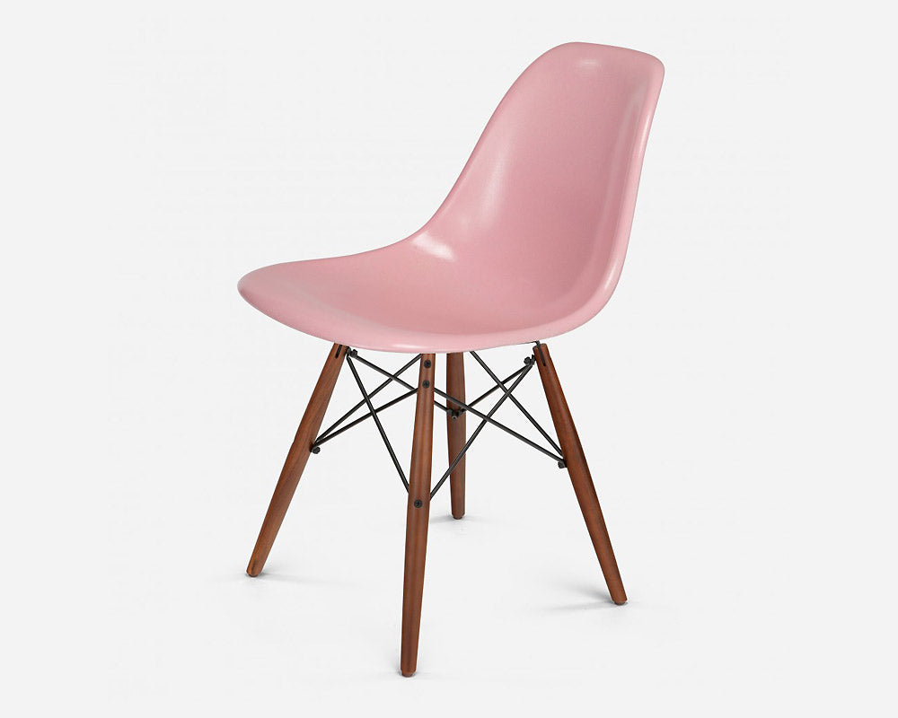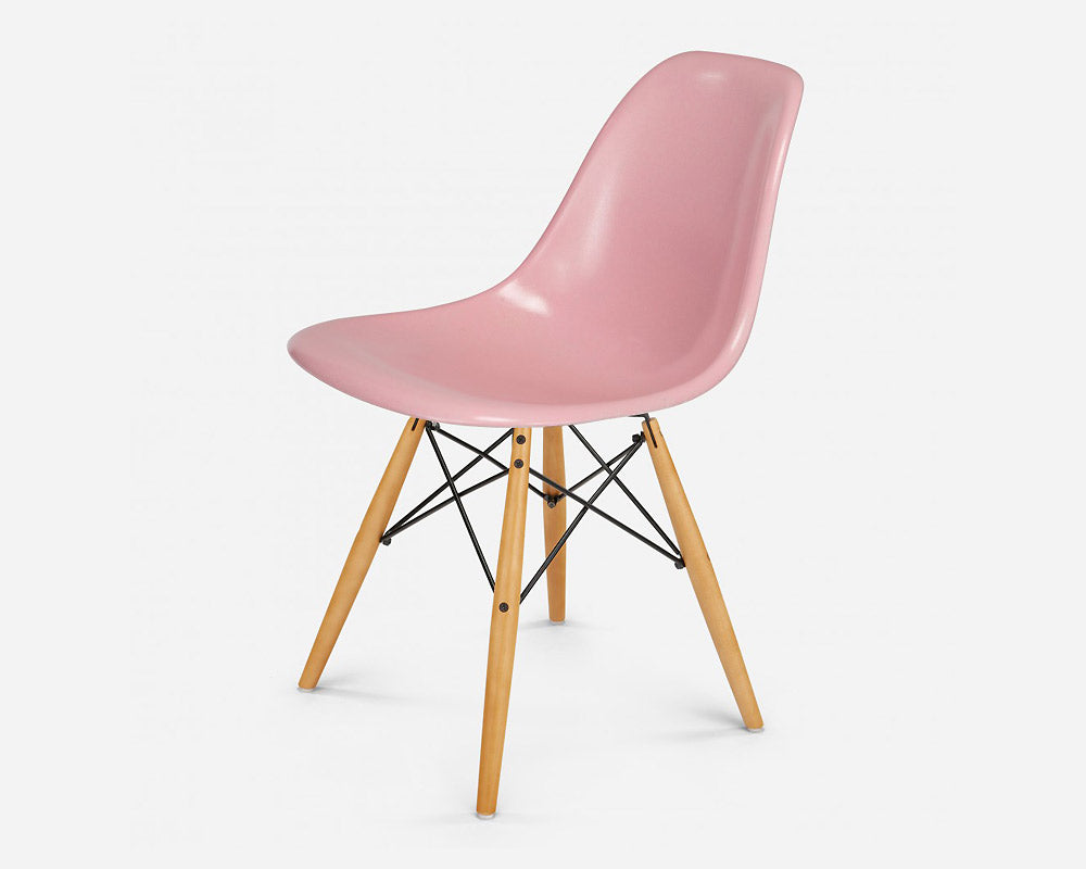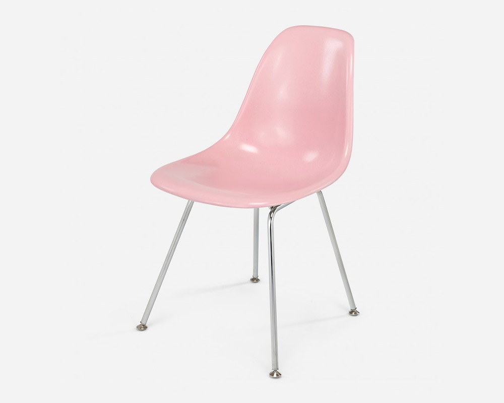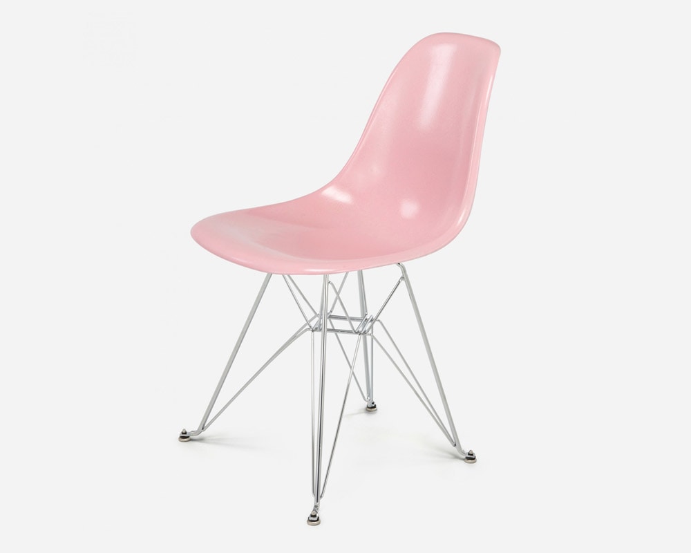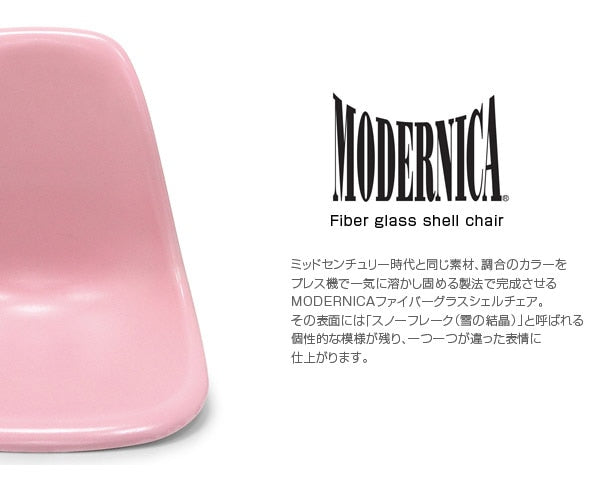 かつてチャールズ・イームズがデザインした「FRP(ガラス繊維強化プラスチック)」を使用したミッドセンチュリーを代表するプロダクト「シェルチェア」。そのオリジナルのサイドシェルチェアを完璧とも言える生産手法により現代へと蘇らせた「モダニカ」の「ファイバーグラスサイドシェルチェア」です。 イームズの代表作でもある「シェルチェア」は、当時開発されたばかりのFRPを使うことで、自由な曲面を製作することができるようになり、高い耐久性と量産性を兼ね備えたこと、用途に応じたさまざまな脚を組み合わせることでできるなど、他には類を見ない発想で20世紀を代表する名作となりました。「モダニカファイバーグラスシェルチェア」は、その「シェルチェア」の生産を1950年代当時から請け負っていた「Zenith(ゼニス)社」の金型や機械を買い取り、当時のままの世界唯一の専門機器を使用して、当時のままの生産手法を使い、同社が誇る熟練の職人たちが一つ一つ手作業で作られています。 現在生産される「シェルチェア」の中で、最も当時のオリジナルに近い製品であることに間違いはありません。 豊富なカラーのシェル/座面と、約20種類にも及ぶ様々なベース/脚を組み合わせることで、ダイニング、リビング、カウンター、書斎など、どんなシーンやライフスタイルにも合わせてお使いいただけます。 ピンクは可愛くて優しい雰囲気のカラーです。女性はもちろん男性にも人気が高く、ブラック塗装のエッフェルベースとセットする事で甘すぎず渋い印象のシェルチェアになります。(ベースの種類は「ベース(脚部)一覧」をクリックしてご確認いただけます。代表(基本)価格は、エッフェルベースまたはローロッドベース付きの価格です)