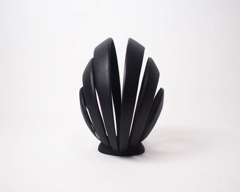 1970年頃にクラフトデザイナー馬場忠寛氏によりデザインされたもので、盛岡・南部鉄器のブックエンド「レタースタンド」です。 大切な人からのお手紙やお気に入りのポストカードをスリットに差し込んでお使いいただけます。 馬場忠寛氏は、日本クラフト協会の理事長を務めるなど、デザインの普及と地方産業の活性化に力を注いできたクラフトデザイナーで、岩手県盛岡市の伝統工芸である南部鉄器のデザインにも古くから取り組まれ、これらの作品の多くは1970年代にデザインされたものです。 伝統的な鉄瓶が主だった当時としては斬新かつモダンだったために多くの人の目に触れることなく製造が終了していました。 長い間眠っていた作品を1990年代にMEISTER/マイスターが復刻を手掛け、現在も当時と変わらぬ方法で製造されています。 そこにあるだけでオブジェにもなるデザインは、見事なまでに現代にマッチし、デザインを通して南部鉄器の良質を伝えてくれます。