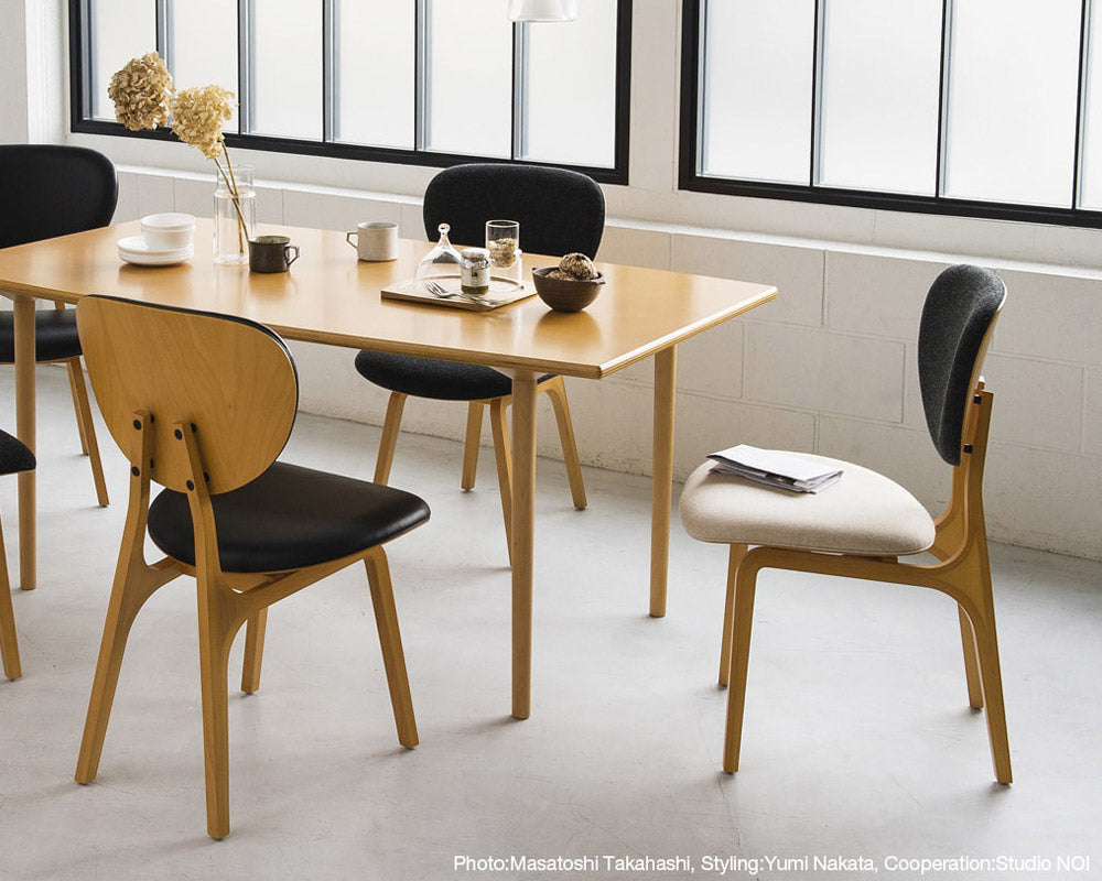 ジャパニーズモダンの最高峰、2006年に復刻となった長大作の「パーシモンチェア」です。1960年、日本初のラケット構造(駒入れ加工)を用い、ミラノトリエンナーレで発表された革新的な椅子を長大作がリデザイン。ミラノトリエンナーレでは会場構成を坂倉準三建築研究所が行い、当時研究所の所員であった長大作が家具デザインを担当しました。有機的なラインを描く背板は、柿の実を真ん中から縦に割った時の曲線がヒントになっています。日本の住空間に良く合い、ダイニングチェアとして最適の椅子です。同じ長大作デザインのマッシュルームベース テーブルとの相性も抜群でダイニングチェアとしても最適です。トリエンナーレモデルは、やわらかで優しい印象のウール混素材の2色張り分け仕様。長大作自身がセレクトしたカラーリングです。NC-128、NC-121を組み合わせた配色です。