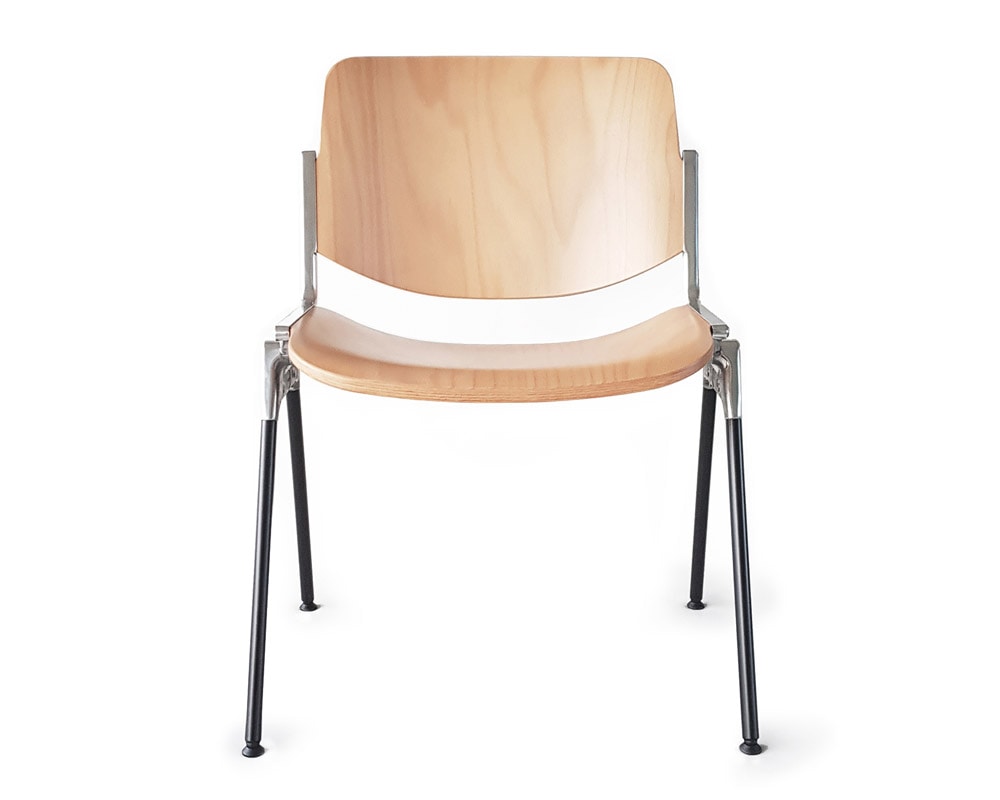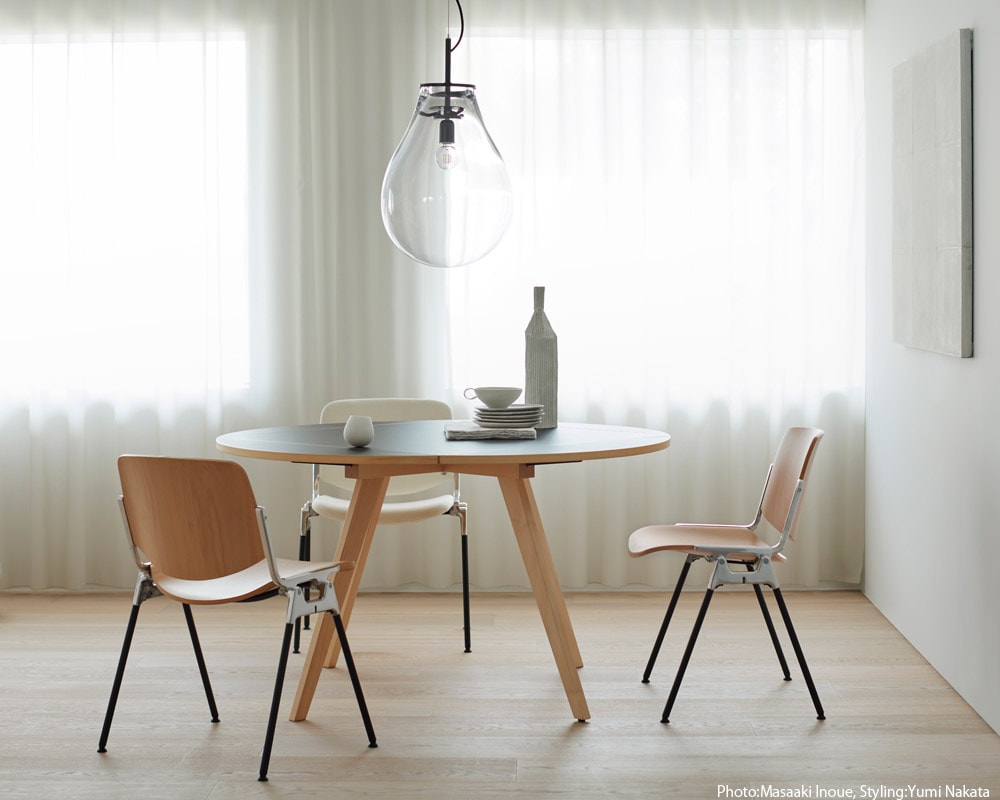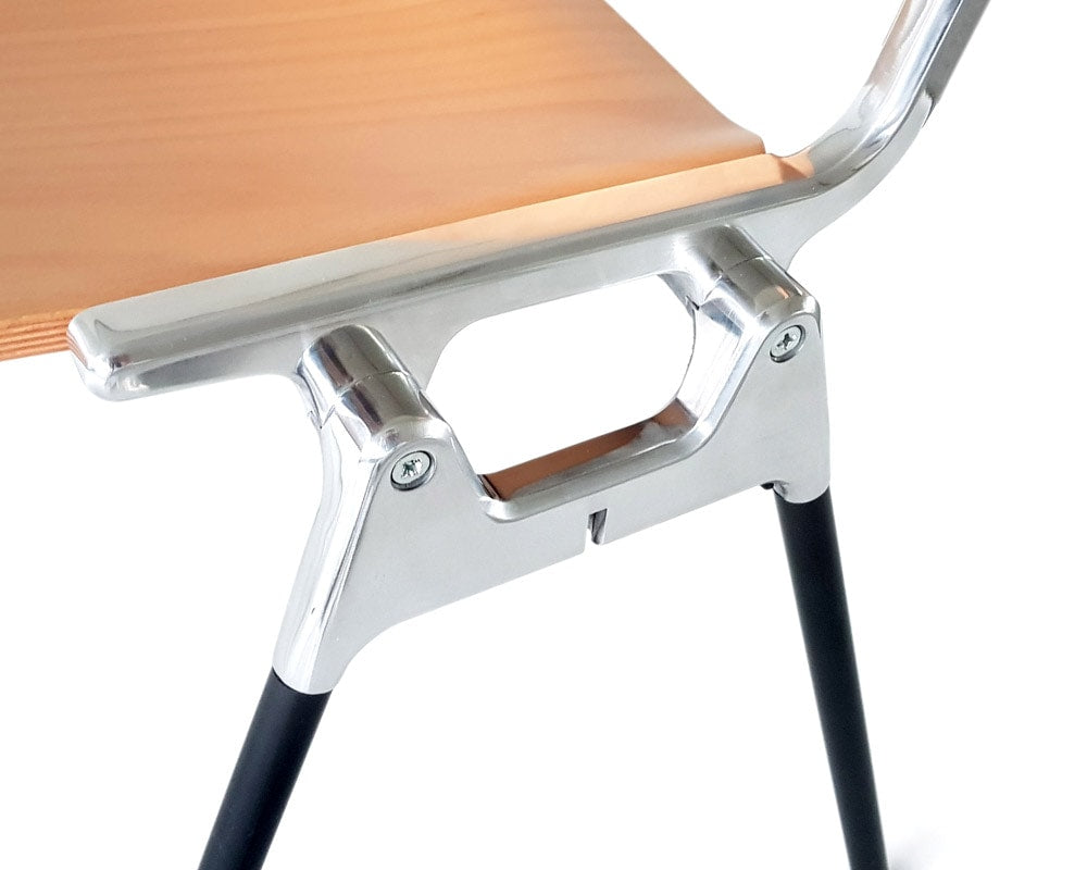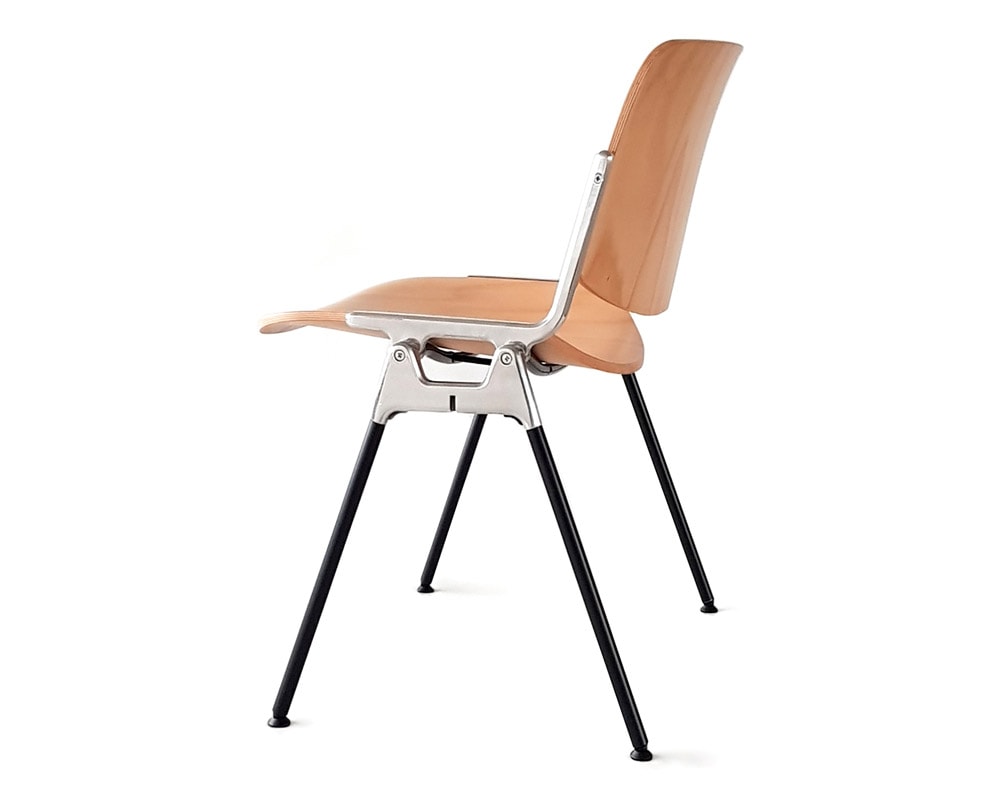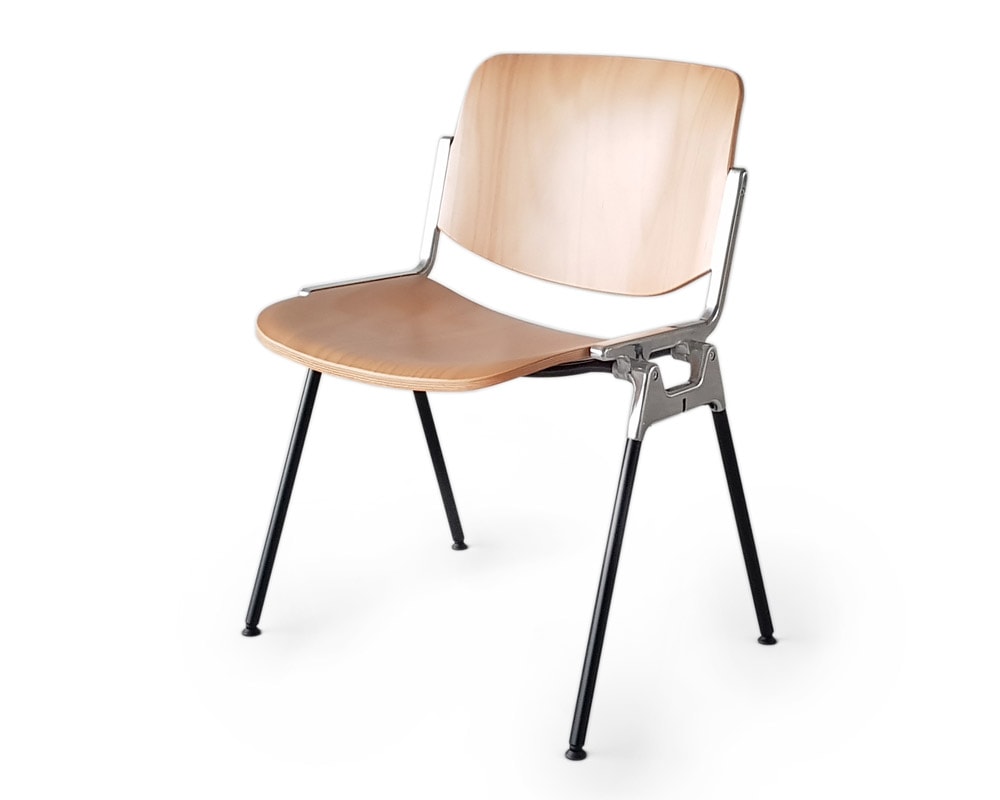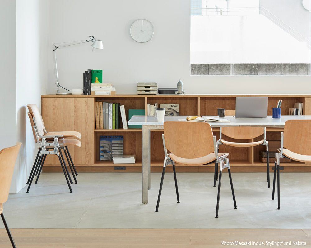 1965年Giancarlo Piretty/ジャンカルロ・ピレッティによってデザインされ、イタリアANONIMA CASTELLI/アノニマカステッリで生産されている名作チェア「DSC106S サイドチェア」。1965年にジャンカルロ・ピレッティによってデザインされた、スタッキングが可能なサイドチェアです。木素材の椅子が主流の時代に、成型合板の座面・背面をアルミニウム製のフレームで挟み込み、ネジで締め上げて固定する構造が生み出されました。人間工学に基づいた座り心地の良さとフォルムの美しさ、機能性を見事に兼ね備えた革新的な名作チェアです。ビーチウッド仕様は、プライウッドが織りなす曲線美を存分に感じることができるのが魅力。長く使い込むことで生まれる、味わい深い経年変化も楽しみなチェアです。