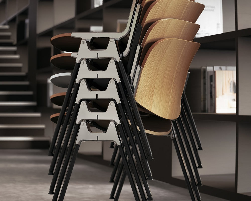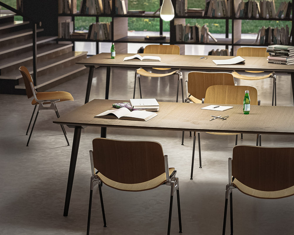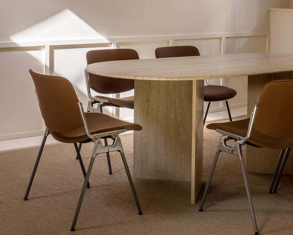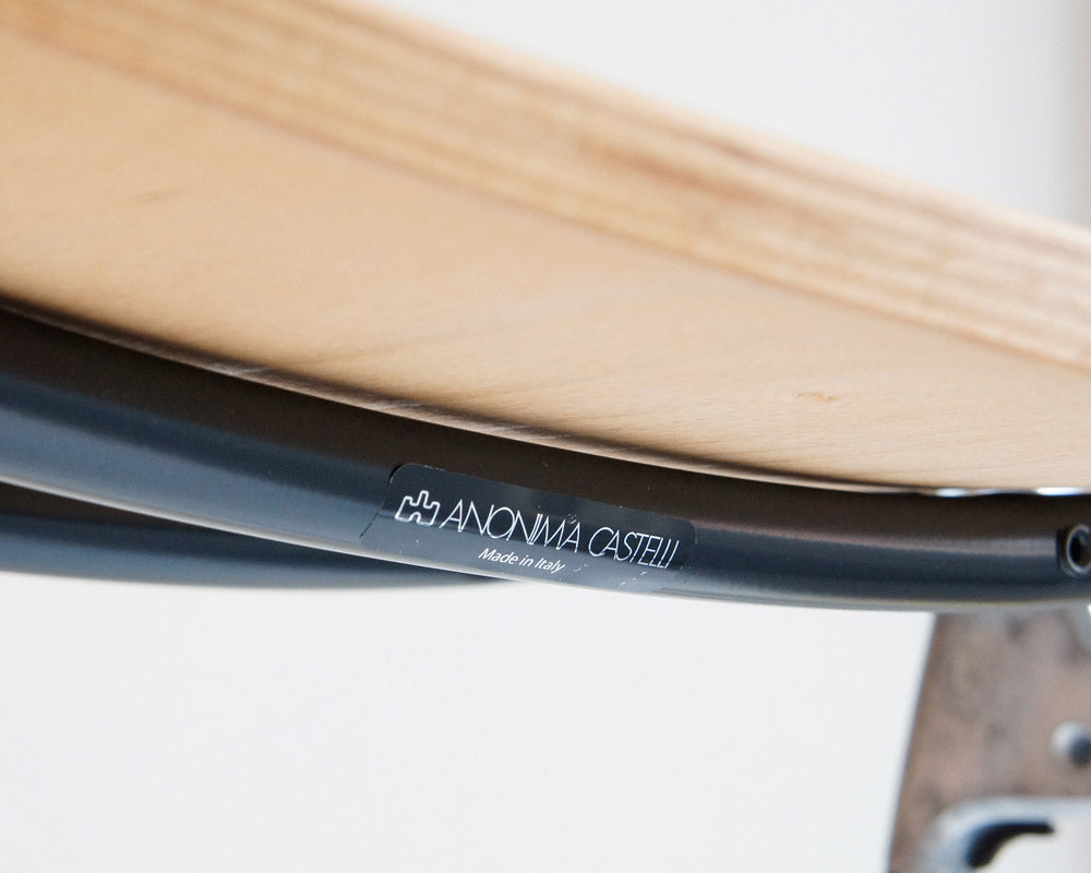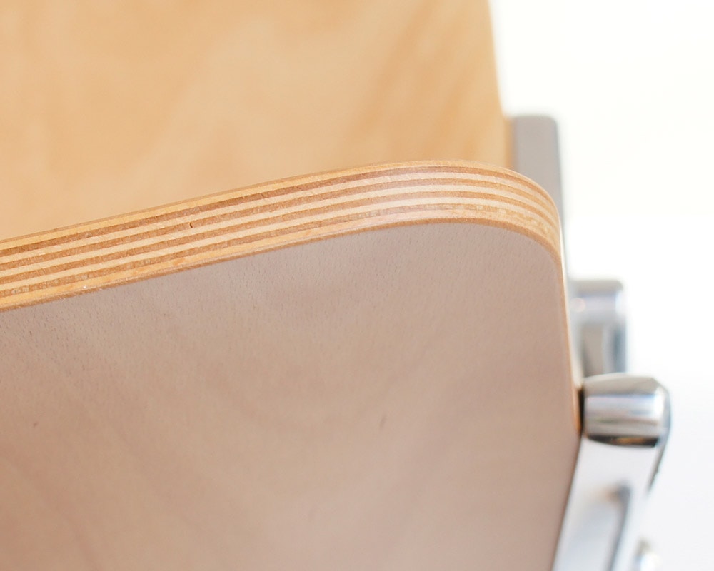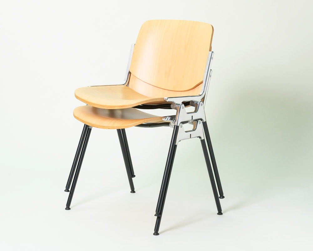 1965年Giancarlo Piretty/ジャンカルロ・ピレッティによってデザインされ、イタリアANONIMA CASTELLI/アノニマカステッリで生産されている名作チェア「DSC106S サイドチェア」。1965年にジャンカルロ・ピレッティによってデザインされた、スタッキングが可能なサイドチェアです。木素材の椅子が主流の時代に、成型合板の座面・背面をアルミニウム製のフレームで挟み込み、ネジで締め上げて固定する構造が生み出されました。人間工学に基づいた座り心地の良さとフォルムの美しさ、機能性を見事に兼ね備えた革新的な名作チェアです。ビーチウッド仕様は、プライウッドが織りなす曲線美を存分に感じることができるのが魅力。長く使い込むことで生まれる、味わい深い経年変化も楽しみなチェアです。