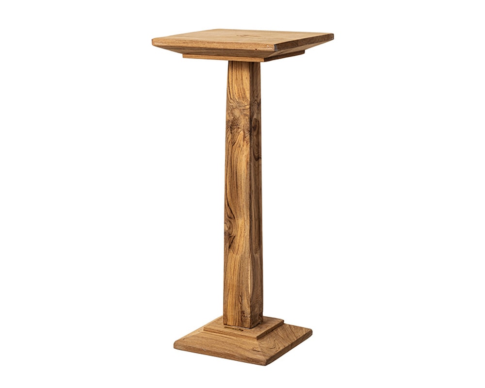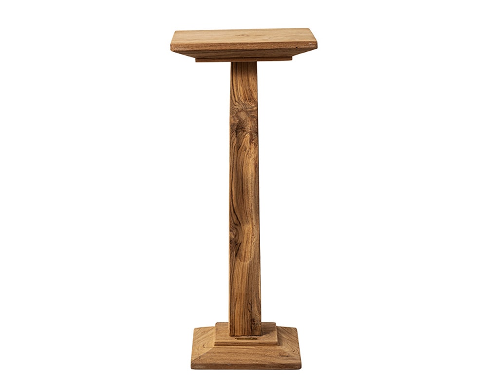 PUEBCO(プエブコ)のチーク材古材を使ったコンパクトなウッドサイドテーブルです。 チーク古材を使用し、ヴィンテージライクな雰囲気に仕上げたサイドテーブルです。 チーク古材をを使用したPUEBCOらしい味わいのある仕上がりです。 約25cm角の小振りで特徴的な天板で、通常のサイドテーブルでは大きすぎる方におすすめ。 コンパクトですが、太めの脚にさりげない装飾を施すなど、存在感のあるデザインに仕上っています。 正方形の天板はチェアやソファサイド、ベッドサイドや玄関など、様々な場所で使いやすい形状です。 また、ショップなどで観葉植物やディフューザー、オブジェ等の飾り台としても最適です。