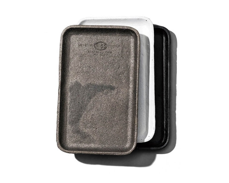 プエブコの鉄鋳物で作られた無骨なトレイ。 ずっしりと重量感のあるキャストアイアン(鉄の鋳物)製のトレイです。 海外の古い工場に置いていそうな佇まいで、たかがトレイですが存在感が十二分にあります。 ナチュラルは少し汚し加工が入っていて、ホワイトやブラックは使い込むうちに、表面の塗装が剥がれ、より雰囲気が増すのも魅力です。 コイントレイやペントレイ、玄関先にポケットに入っているものをザクッと置くトレイとして。 表情は一つ一つ違い、無骨な工業製品ぽいデザインながら、どこか温かい雰囲気も持ち合わせています。