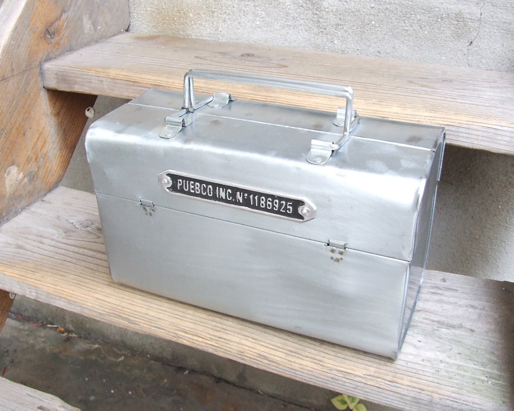 PUEBCO(プエブコ)のヴィンテージライクなスチール製ツールボックスです。 塗装を施していないシンプルで無骨なツールボックス。 業務用ツールボックスと比べ、スチールは薄く全体的に軽い印象で、お部屋で小物などの整理や収納などにも最適なボックスです。