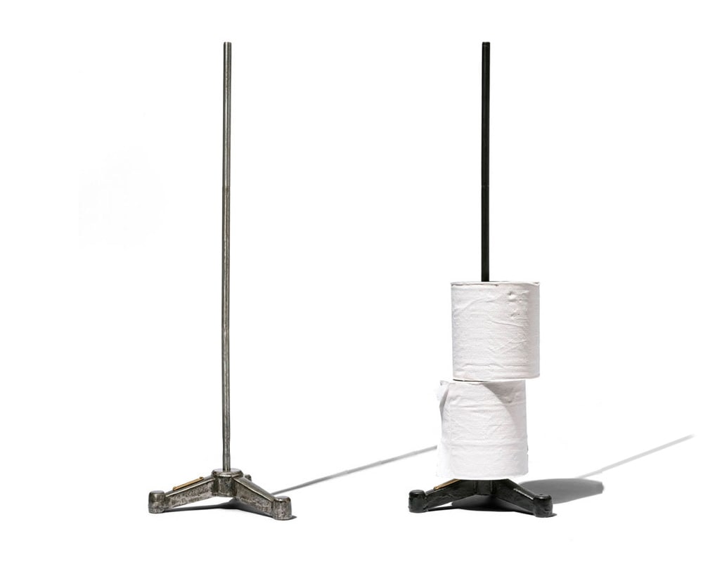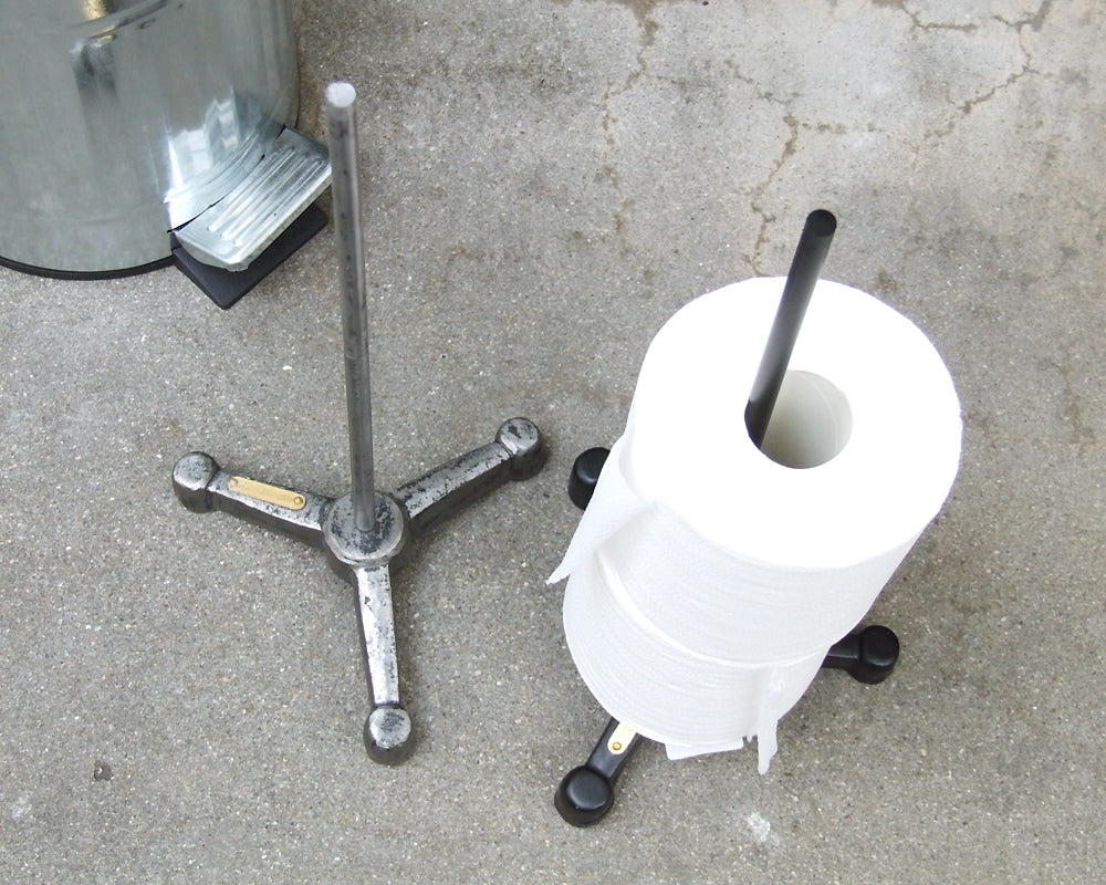 PUEBCO(プエブコ)のキャストアイアン(鋳鉄)製のトイレットペーパーホルダーです。 鋳鉄製で重量があるためバランスが良く、またコンパクトで場所を取らず、収納に困るトイレットペーパーをきれいにストックできます。 鉛直に伸びた棒は、3分割になっているため、2本だけを使って高さを低くすることも可能です。低くすることでキッチンペーパーなどにもお使いいただけます。 ヴィンテージのスタンドを思わせるプエブコらしいデザインと加工が、他にはあまりない雰囲気のペーパーホルダーです。