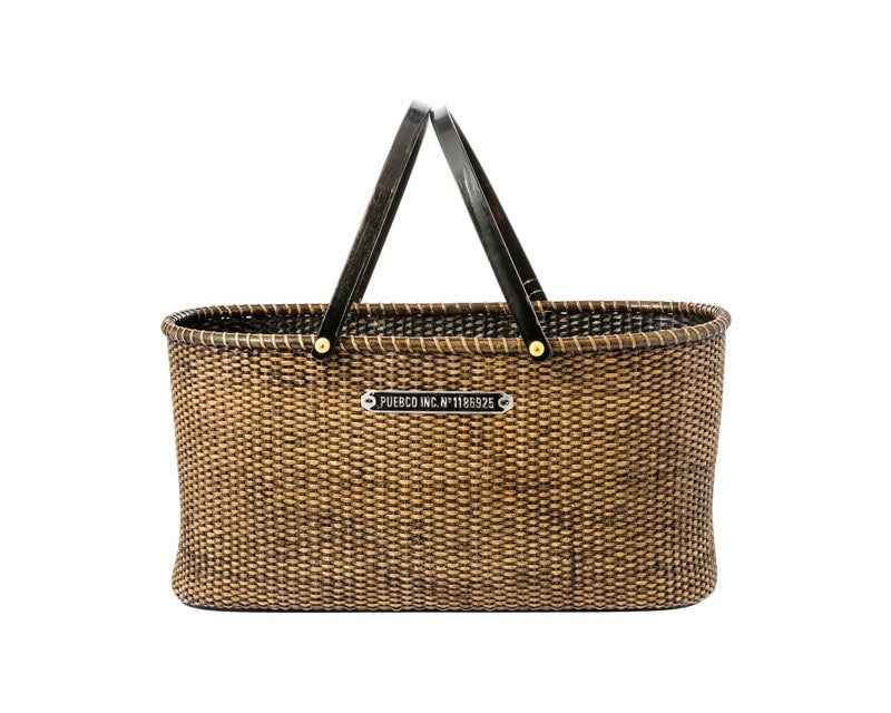 ラタンで丁寧に編み込まれ、頑丈で収納などにも最適な大ぶりのサイズ感の、PUEBCO(プエブコ)のハーベストバスケットです。 かつて農作物の収穫用として使われてきたラタンで編まれたバスケットです。 1日に3個しか作ることができないこのバスケットは、ラタンを1つ1つ丁寧に手作業で編み込んで作られています。 ハンドルは曲げ木を用い、底部にはパインウッドを入れ込んでいて、非常に頑丈に作られています。 色合いや、形、細部のパーツまで絶妙のバランスで、正面には「PUEBCO」のプレートが付けられています。 アウトドアに持ち出すもよし、お部屋の整理や収納、ちょっとした隠したいもののエスケープ場所としてもよしの、置いていて絵になるラタンバスケットです。