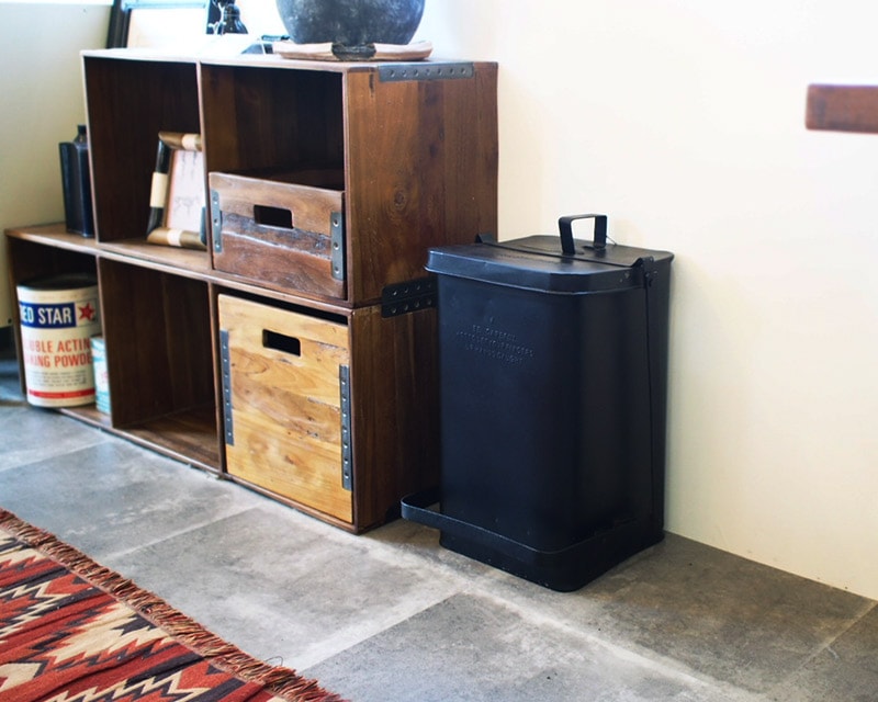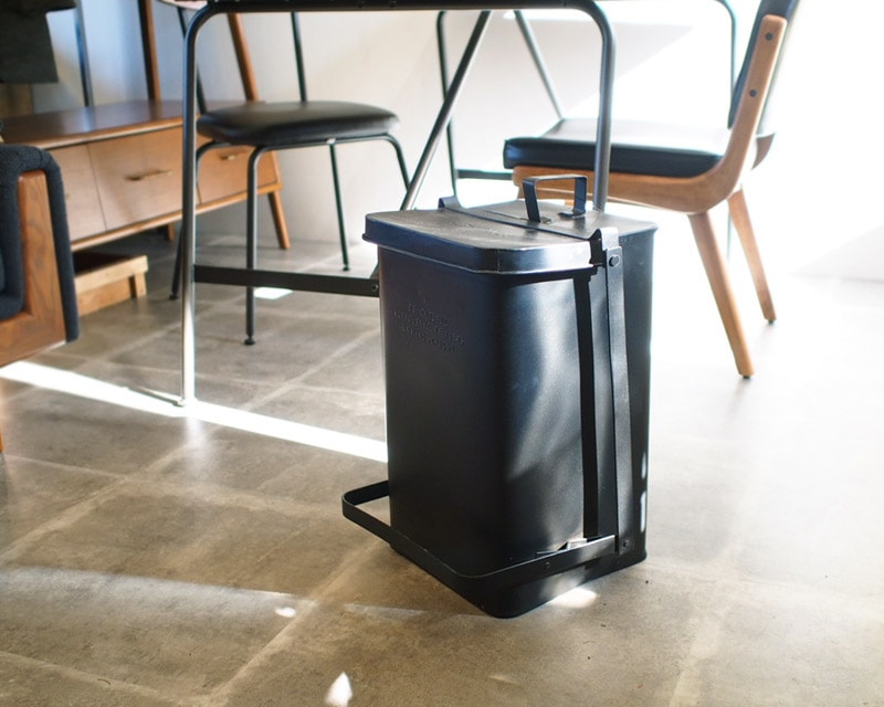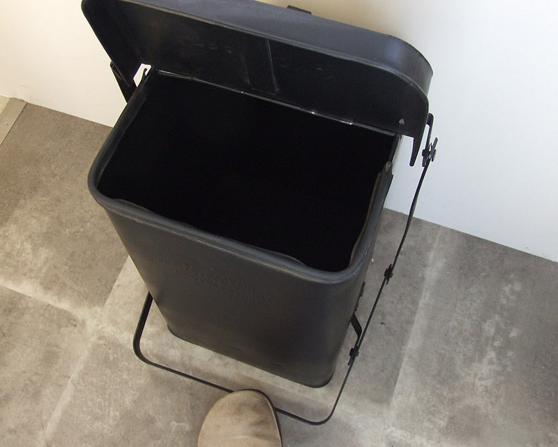 無骨で粗い作りでヴィンテージライクな雰囲気の、PUEBCO(プエブコ)のステップ式トラッシュカン(ゴミ箱)です。 重量感があり、あえて雑に作られたこのゴミ箱。一般的な工業製品とは一線を画す仕上がりは、コンクリートの床や壁、古材を使った床にペンキで塗られた壁などインダストリアルな空間に良く似合います。普通のゴミ箱ではどうしても雰囲気が合わない空間にしか使用できないといっても過言ではありません。 1点1点手作りで作られいるため個体差も大きく、キズや凹みなどお構いなしにありますが、この商品にしかない独特の無骨さがあります。きれいなゴミ箱ではどうしてもお部屋の雰囲気を崩してしまう。こんな無骨なゴミ箱を探していた、という方にはおすすめします。 この雰囲気でステップ式の蓋付きゴミ箱など、他にはおそらくありませんから。しっかり実用的ですので。