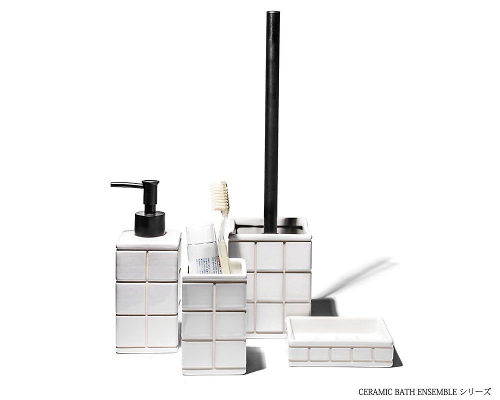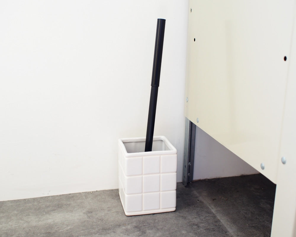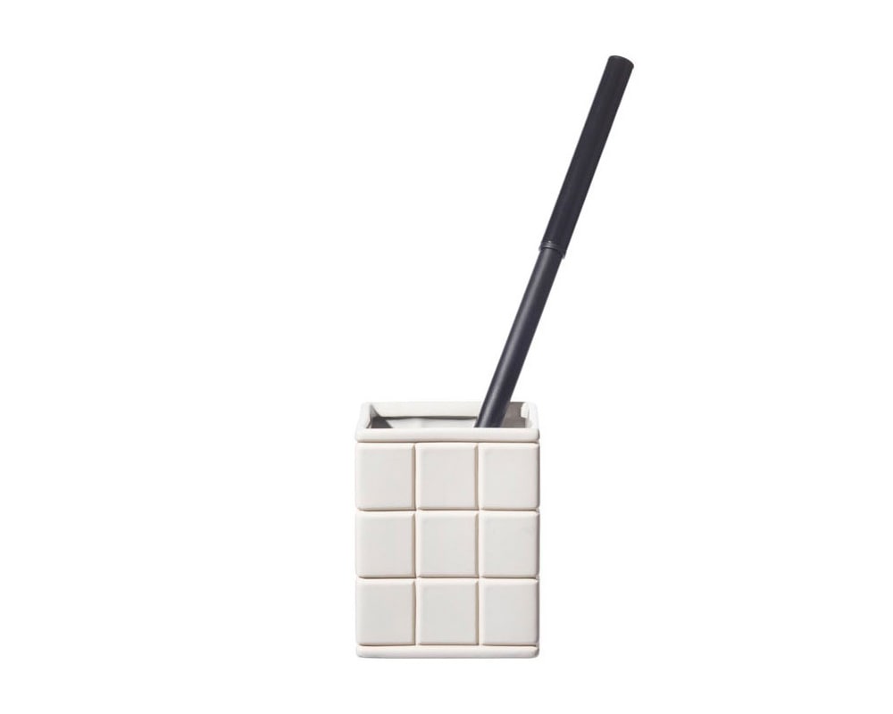 タイルモチーフの陶器で作られたのPUEBCO(プエブコ)のトイレブラシです。 ナチュラルな雰囲気にもインダストリアルな空間にも合わせられるトイレブラシです。 シンプルな形状ながら、使いやすいサイズ感と、タイルを貼ったようなモチーフの陶器製容器が目を引くデザインで、ブラシ部分の色はプラスチック製のブラックです。 今までのトイレタリーには無い雰囲気で、洗面所などに置いておいても絵になるデザインです。