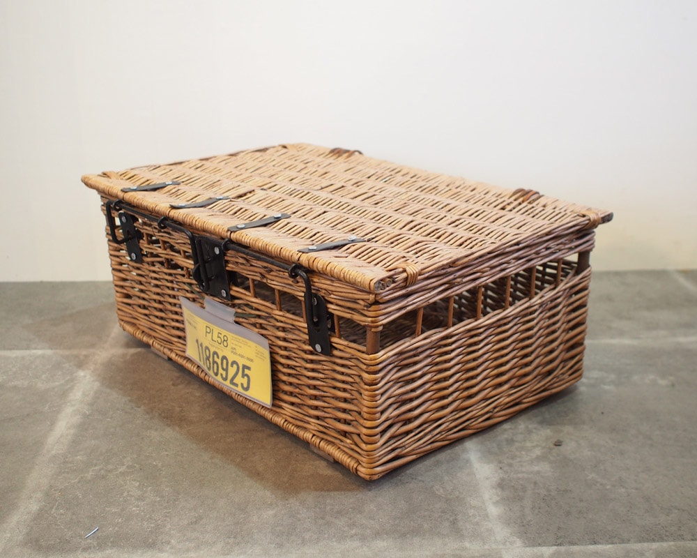 ウィロー/柳で丁寧に編み込まれ、頑丈で収納などにも最適な大ぶりのサイズ感の、PUEBCO(プエブコ)のラウンドトリップバスケットです。 デザインのモチーフにしたのはアメリカで見つけた1940〜1950年代のヴィンテージのバスケット。マーケットで鶏が生きたまま食肉と売られていた時代、数羽の鶏をまとめて運ぶ流通の入れ物だったそう。 価格や識別番号などが書かれたプレートが取り付けられていたり、鉄の鍵がかけられるようになっていたことなど細部にまで工夫が見られ、工業的な雰囲気も感じることができたバスケット。 ラウンドトリップバスケットは、このバスケットをふたまわりほど小さくして家庭の収納用品としてつかえるようにしたものです。 当時のものと同じように素材はウィロー(柳)を使い、大きな柳畑の隣で、女性達が手編みで編んでいます。 アウトドアに持ち出すもよし、お部屋の整理や収納、ちょっとした隠したいもののエスケープ場所としてもよしの、置いていて絵になる蓋付きのバスケットです。