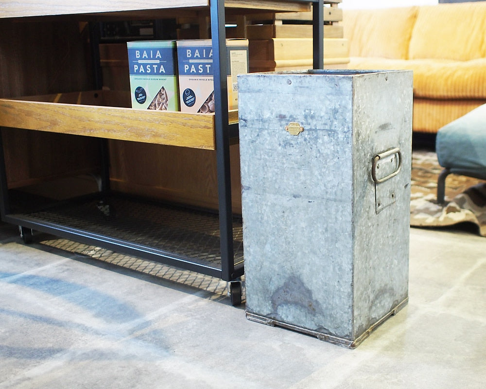 PUEBCO/プエブコのヴィンテージのボックスを使用した「VINTAGE STEEL STORAGE/ヴィンテージスチールストレージ」です。 元々、インドで穀物などの販売に使われていたボックスを、収納などのストレージとして再利用した商品です。 使い込まれた雰囲気が良く、インダストリアルやヴィンテージ家具などとの相性も抜群で、小物や玩具の収納箱として、ダストボックスやペーパーバスケットとして、少し工夫して観葉植物の鉢カバーとして・・・アイデア次第で様々な使い方のできるシンプルなストレージボックスです。