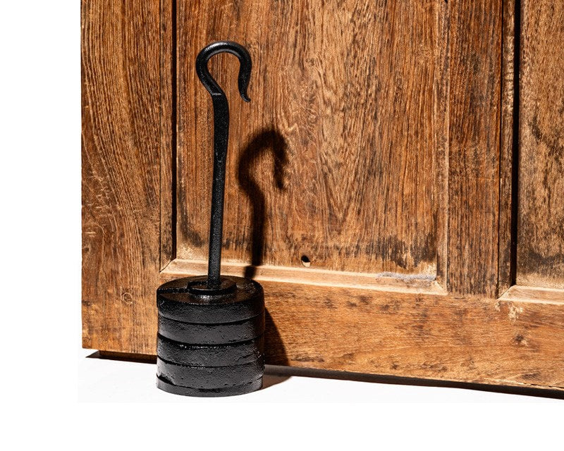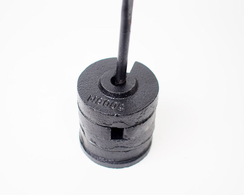 重り/ウェイトをモチーフにデザインした、PUEBCO/プエブコのWEIGHT DOOR STOP/ウェイトドアストッパーです。 工場などで使われる計りの重りを、ドアストッパーとして使用することを提案しています。鉄鋳物にラフにブラックのペイントが施された無骨な雰囲気で、オブジェ的にインテリアのアクセントとして。
