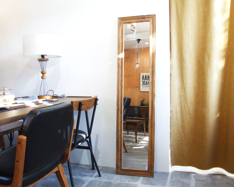 PUEBCO(プエブコ)のチーク古材を使ったミラー(姿見)「VINTAGE FRAME FIGURE MIRROR/ヴィンテージフレーム フィギュアミラー」です。 チークの古材を使用し、ヴィンテージライクな雰囲気に仕上げたフィギュアミラーです。 背面には壁面に掛けることができるよう金具があり、立てかけるだけでなく壁掛けも可能です。