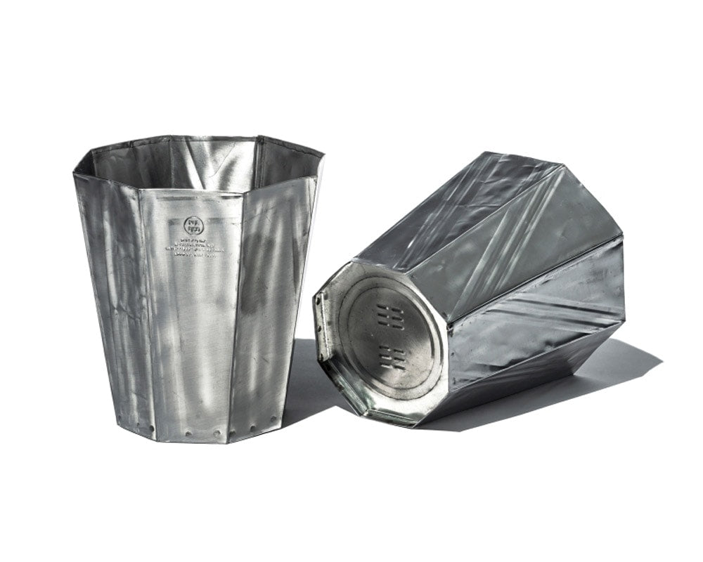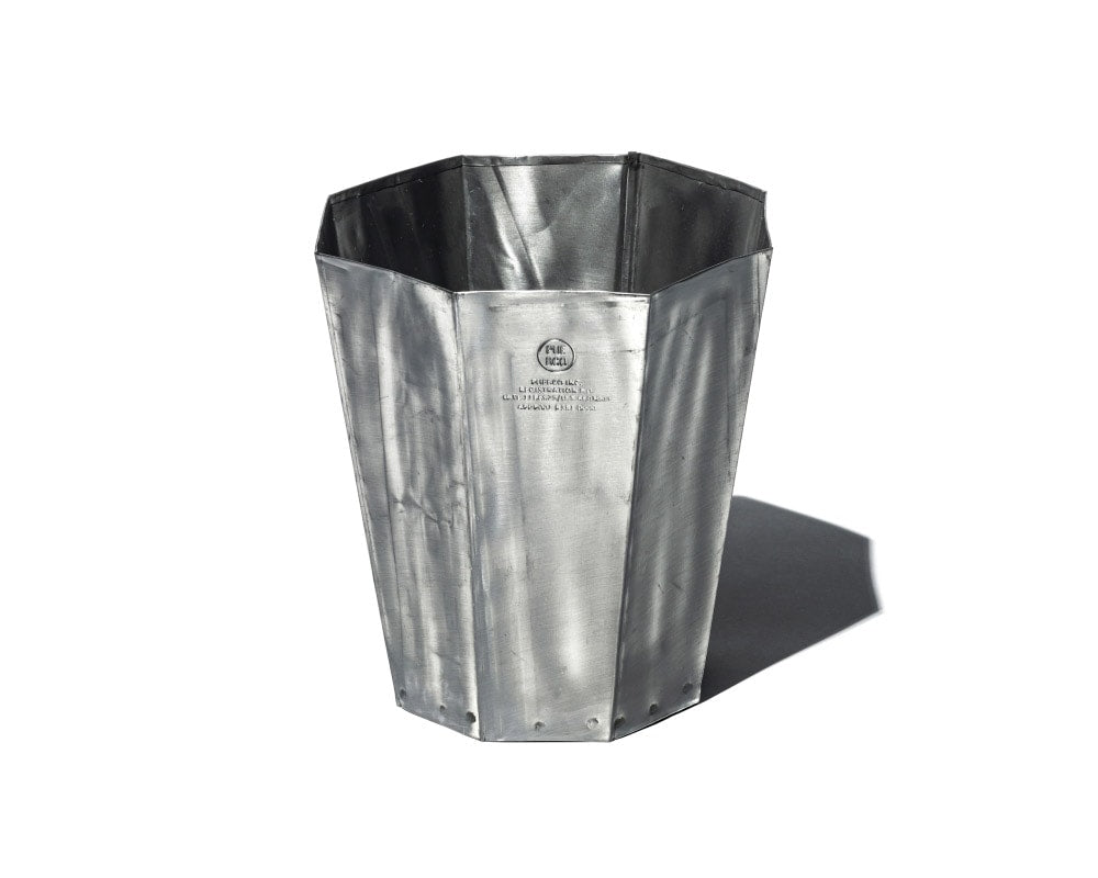 PUEBCO(プエブコ)のユーズドのスチール製のオイル缶(一斗缶)を再利用して作られたゴミ箱「リサイクルスチールトラッシュカン オクタゴン」です。 インドで食用油の輸送用の一斗缶をリユース、洗浄しテーパーをかけた八角形に加工されたトラッシュカン/ゴミ箱です。 使用済みのモノをそのまま加工しているため、元々のエンボスや着色、錆やキズなどあえて残した雰囲気がプエブコらしいヴィンテージ感を演出しています。 底に向かってテーパーがかかっているので、積み重ねることも可能で、ゴミ箱以外にもプランターカバーなどアイデア次第で、お部屋のアクセントになってくれるアイテムです。