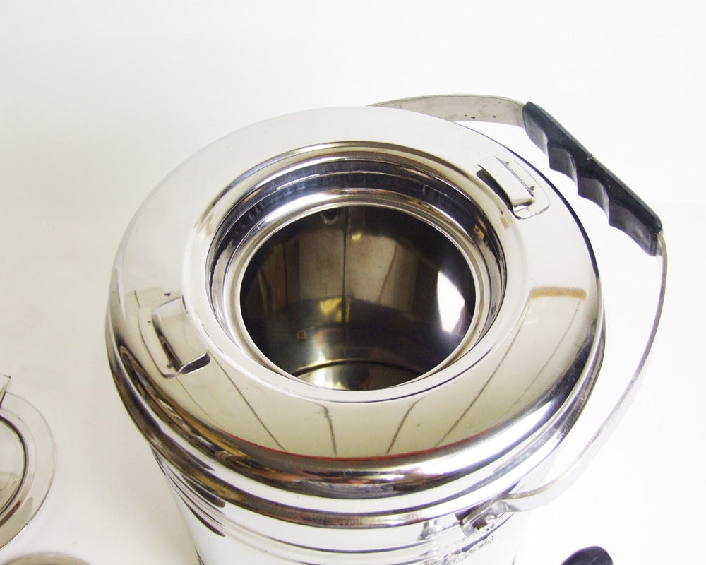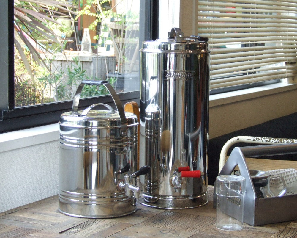 PUEBCO(プエブコ)のステンレスで作られた、タフで着飾らない業務用ビバレッジディスペンサー(BEVERAGE DISPENSER)です。もともとはチャイを入れて使われている、2重構造になったステンレスのディスペンサーです。インドのチャイ用の業務用ディスペンサーをあえて、日本都市部のコーヒーに置き換え、「朝の忙しい時間のコーヒーはセルフで」という提案でPUEBCOがセレクトしたもの。サイズは2.5Lと5Lからお選びいただけ、それぞれ違うデザインになっています。業務用らしいシンプルで何の飾り気もないスタイル、インドというお国柄らしいラフで雑な作りが、今のライフスタイルにマッチします。