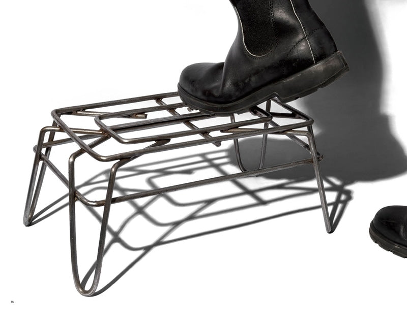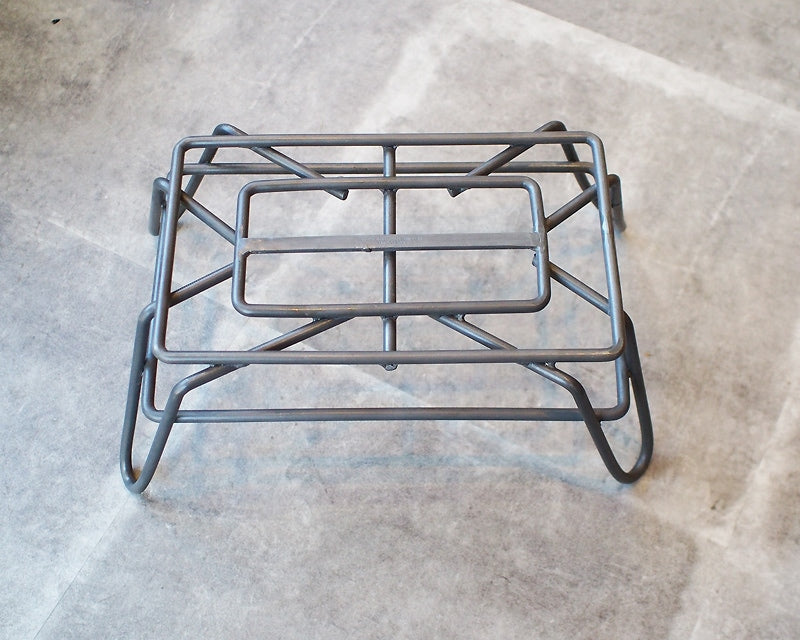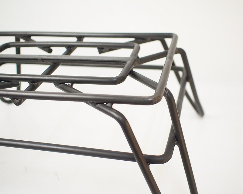 PUEBCO(プエブコ)のアイアンで成形されたステップスツール(踏み台)です。 直径10mmの極太ワイヤーを曲げと溶接で作られた無骨なステップスツール(踏み台)です。ありがちな踏み台とは一線を画すデザインで、ガレージやショップ等にも良く似合う雰囲気。 耐荷重も約80kgと非常に丈夫で、ステップスツールとしての用途意外にも、観葉植物の鉢台や、古材などの天板を乗せて飾り台としてもお使いいただけます。