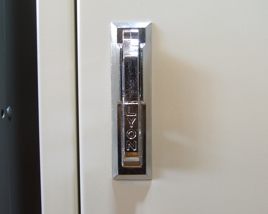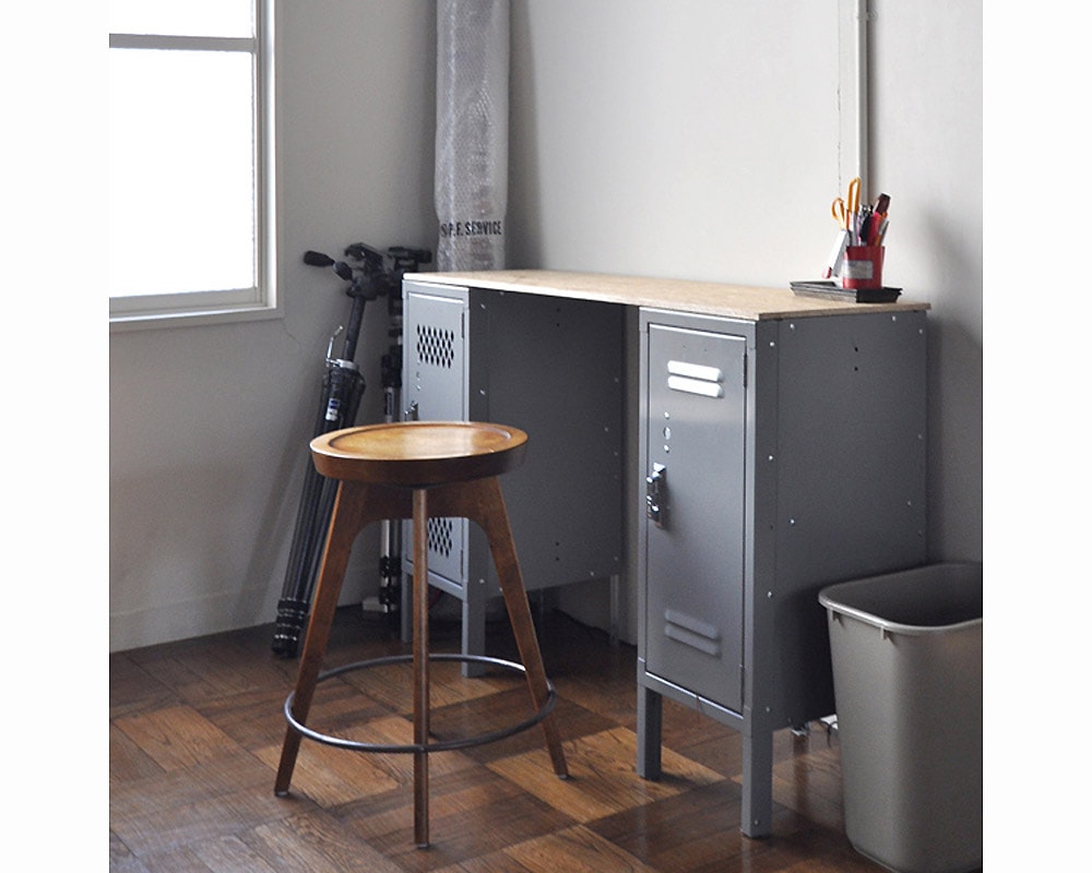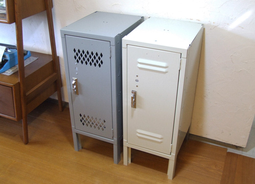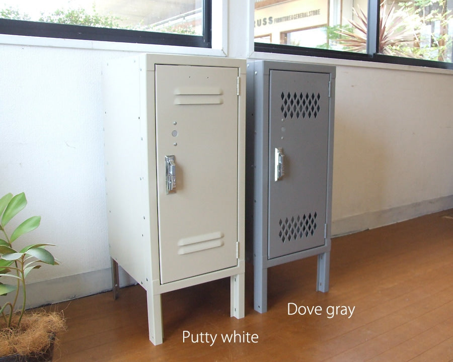スチールロッカーのパイオニアメーカーであるアメリカ「LYON(リヨン)社」に別注したハーフサイズのロッカーです。日本の住宅事情を吟味し、日本の総代理店でもある「Pacific Furniture Service」がLYON社へスチールロッカーのハーフサイズで製作依頼した特別なロッカーです。定番のロッカーの約半分の高さ79.5cmなので、デスクなどのサイドチェストとして使ったり、ちょっとした小物入れに使ったりご家庭用としてちょうどいいサイズ。また、天板を渡して作業台やデスクとして使用するのもおすすめです。扉を開くとちょうど真ん中に棚板(取付けせずに使用も可能)があります。扉のデザインは、ルーバーカット・ダイヤカットの2種類、カラーはそれぞれDove gray(グレー)、Putty white(アイボリー)、Cosmoblue(ダークブルー)、White(ホワイト)の4色からお選びいただけます。今では少なくなったMade in USAで、変わらない工業用のデザインが、お部屋の実用的なアクセントにもなってくれます。※現在ルーバーカットタイプのみの販売になっております。