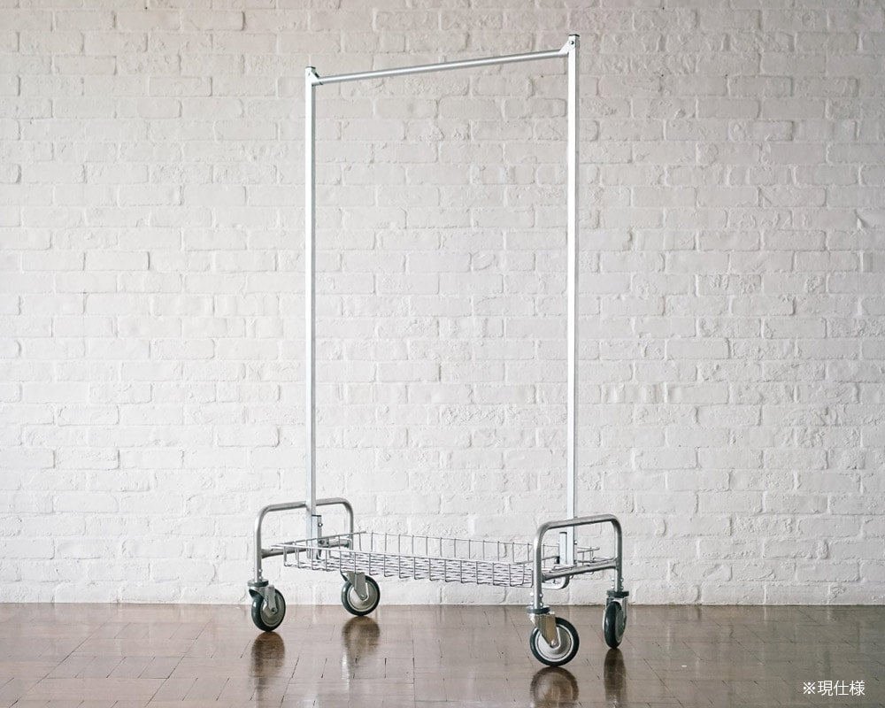 ランドリーカートで人気のアメリカR&B社の業務用ハンガーラックです。シンプルで格好いいデザインのハンガーラックに出会えたことはありますか? いわゆるハンガーラックと呼ばれるモノは、ホームセンターなどによくあるパイプのチープなラックがほとんどで、ここまで格好いいラックはなかなか無いのではないでしょうか? このハンガーラックは「ランドリーカート」で人気のアメリカR&B社の業務用ラックです。頑丈で使い勝手重視のデザインでさっと服を掛けておくのに非常に便利。そのうえインテリアを格好良く見せてくれる優れたアイテムです。下部に設けられたシェルフ(バスケット)にはパンツやバッグなど掛けないアイテムをガサッと入れておくことが出来ます。糸くずが絡まず、動きが滑らかな業務用キャスターを採用しているため、重量のあるものをかけている際にも力を使わずスムーズに移動ができるのも特長です。※環境問題などにより、本国アメリカでクロームメッキの生産が難しくなってきているため、現入荷分はパウダーコート仕上げになっています。