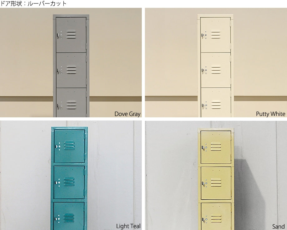 スチールロッカーのパイオニアメーカーであるアメリカLYON(リヨン)社の5ドアロッカーです。アメリカでは学校・公共施設等で使用されている定番品で、こちらは5ドアのタイプで5段の収納スペースになっています。通常のロッカーとしてはもちろん、本棚や靴箱など家庭内でのご利用にも適しています。扉のデザインはルーバーカットとダイヤカットから(このページはルーバーカット)、カラーはそれぞれDove gray(グレー)、Putty white(アイボリー)、Light Teal(青緑)、Cosmoblue(深青)の4色からお選びいただけます。今では少なくなったMade in USAで、変わらない工業用のデザインが、お部屋の実用的なアクセントになってくれます。<ご注意> 組立て後のお届けになりますが、全てのパネルをビスで固定している商品のため、配送時の振動などで固定ビスが緩み、到着後再度締め直ししていただく必要がある場合がございます。予めご了承下さい。仕様変更のお知らせ> 前面パネルの仕様変更があり、ドアの間に横フレームが入った仕様とフレームが見えない仕様が生産ロットにより混在しますので予めご了承下さい。
