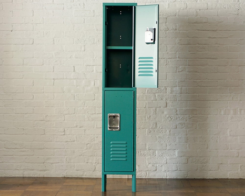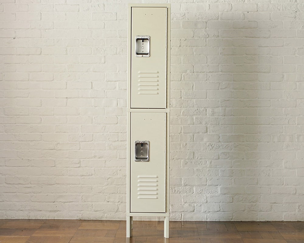 学校、大学、スポーツアリーナ、病院など、公共施設で使用されているアメリカ「ASI/エーエスアイ」社のロッカーです。定番の奥行き15インチの2ドアタイプです。ASI社は1957年から創業している歴史あるアメリカのメーカーです。アジアに生産拠点を設けることでリーズナブルな価格を可能にしており、ロッカーの製造は2003年より開始しています。公共施設においてロッカーはパーソナルを仕切るものという概念のものですが、ロッカーを家で使う時は、扉で隠してしまう収納という考えをやめ、家という装置に生活必需品をどう配置するかをぜひ考えてみてください。こちらは2ドアのタイプで内部はそれぞれ2段ずつ、計4段の収納スペースです。A4サイズのファイルも収まる高さがあり、使い勝手の良いサイズなので、家庭内での使用はもちろん、オフィスでの使用にも適しています。<ご注意>組立て後のお届けになりますが、全てのパネルをビスで固定している商品のため、配送時の振動などで固定ビスが緩み、到着後再度締め直ししていただく必要がある場合がございます。予めご了承下さい。