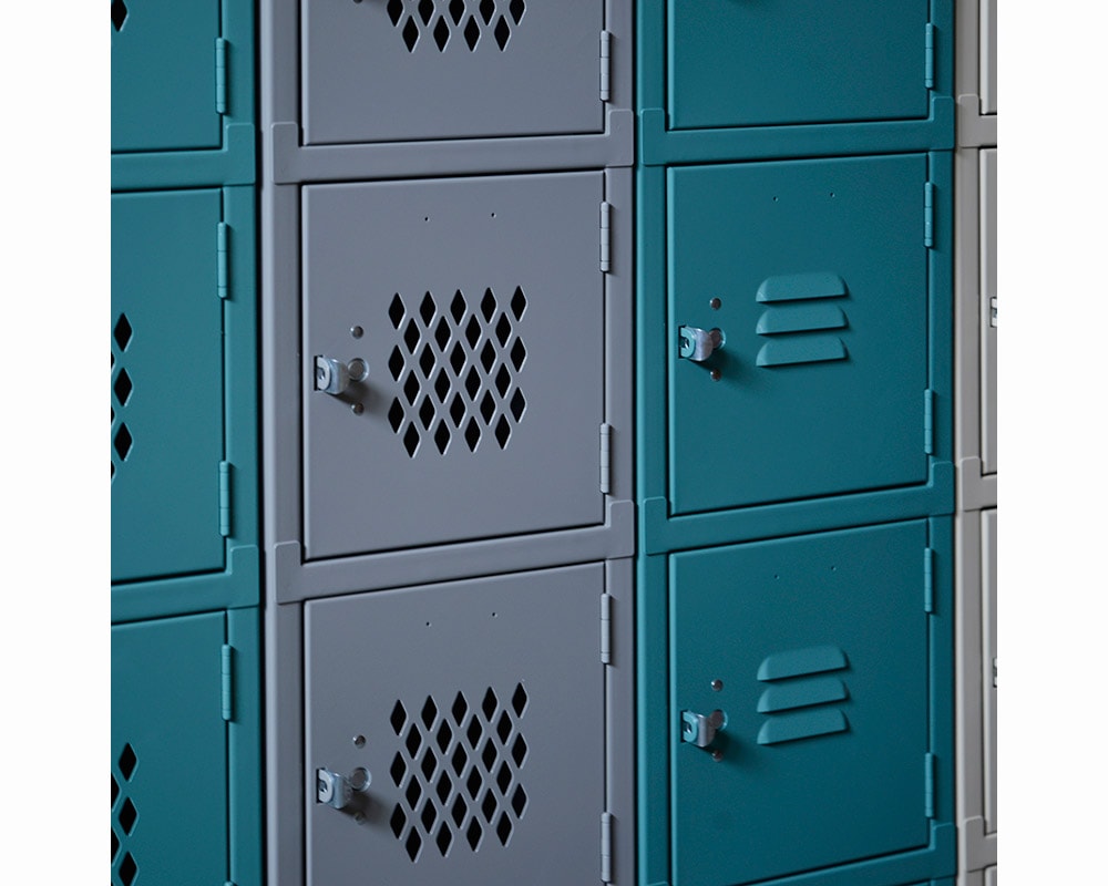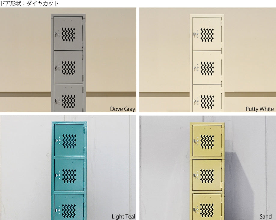 スチールロッカーのパイオニアメーカーであるアメリカLYON(リヨン)社の5ドアロッカーです。アメリカでは学校・公共施設等で使用されている定番品で、こちらは5ドアのタイプで5段の収納スペースになっています。通常のロッカーとしてはもちろん、本棚や靴箱など家庭内でのご利用にも適しています。扉のデザインはルーバーカットとダイヤカットから(このページはダイヤカット)、カラーはそれぞれDove gray(グレー)、Putty white(アイボリー)、Light Teal(青緑)、Cosmoblue(深青)の4色からお選びいただけます。今では少なくなったMade in USAで、変わらない工業用のデザインが、お部屋の実用的なアクセントになってくれます。<ご注意> 組立て後のお届けになりますが、全てのパネルをビスで固定している商品のため、配送時の振動などで固定ビスが緩み、到着後再度締め直ししていただく必要がある場合がございます。予めご了承下さい。仕様変更のお知らせ> 前面パネルの仕様変更があり、ドアの間に横フレームが入った仕様とフレームが見えない仕様が生産ロットにより混在しますので予めご了承下さい。