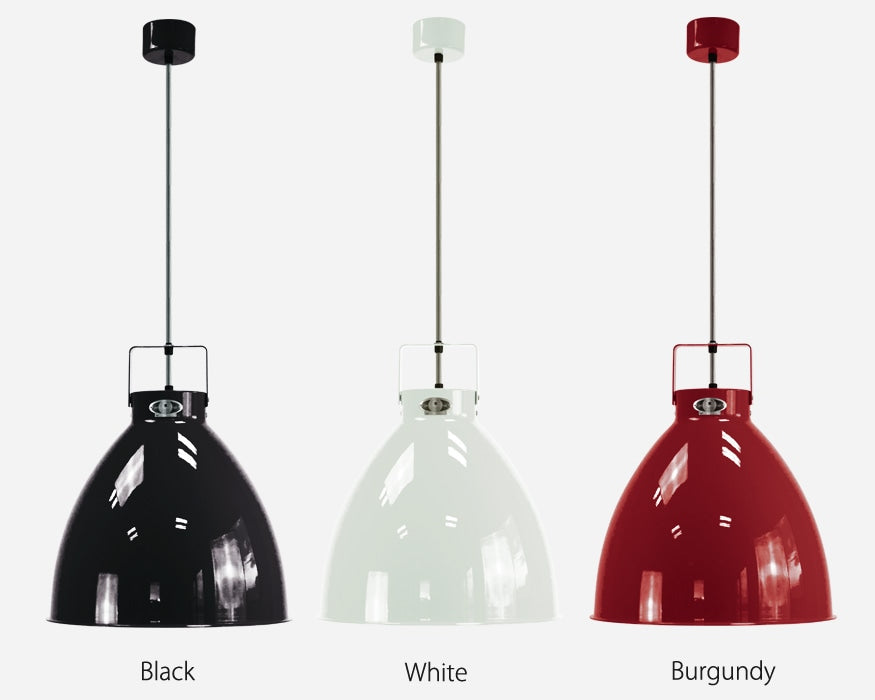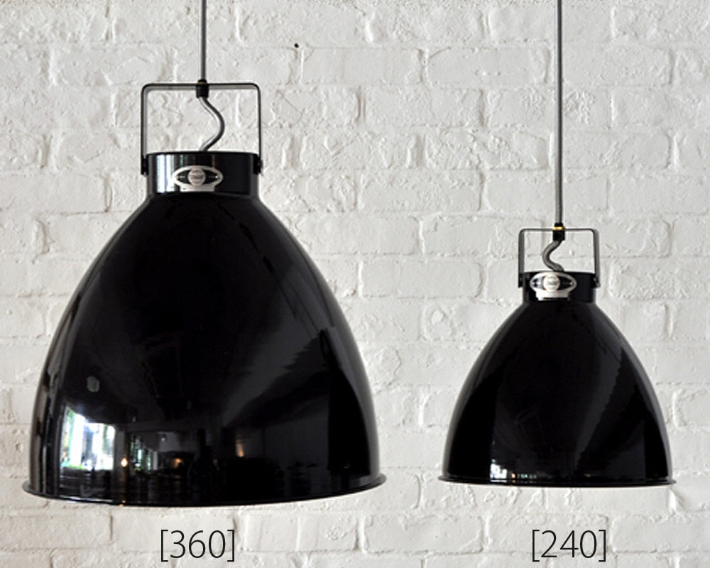 Jielde(ジェルデ)社のシーリングランプ"AUGUSTIN(オーガスティン)"です。まるで工場で使われているかのようなシンプルかつ機能的で独特のスタイルの"AUGUSTIN"は、1950年以来ロングセラーを続けているJielde(ジェルデ)社のシーリング(ペンダント)ランプです。ジェルデらしいシンプルで美しいフォルムと艶のある仕上げはお部屋の雰囲気を1段階グレードアップさせてくれます。「360」は存在感のある大ぶりのサイズで、リビングなどにあわせやすい大きさです。「240」はやや小振りで、ダイニング上やキッチンににあわせやすく、多灯吊りもおすすめです。シンプルなフォルムは1つのリビングに2つ吊る下げてもうるさくなく、広めのお部屋で天井シーリングが2箇所ある場合などにも最適です。