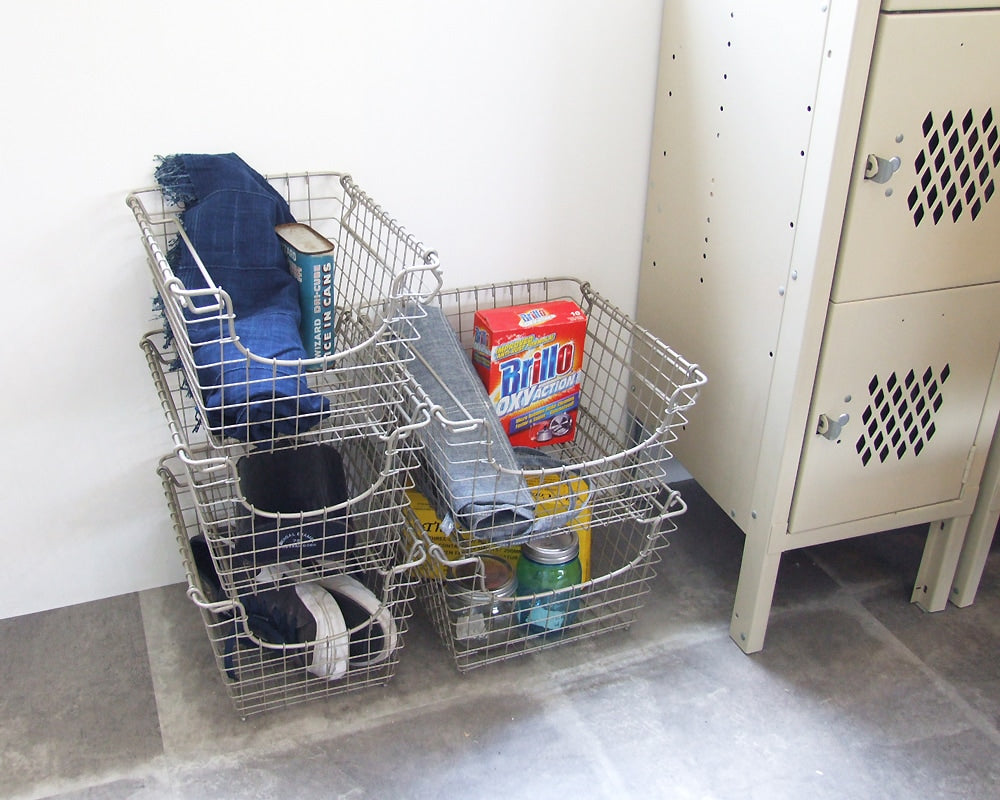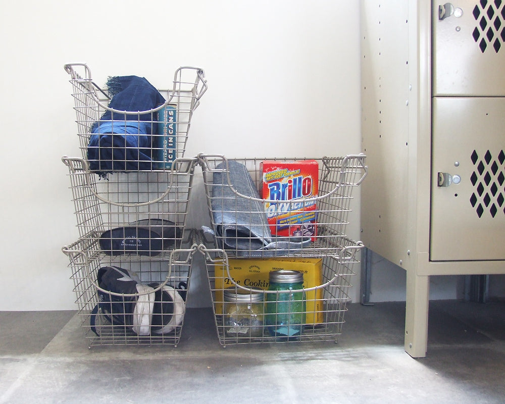 アメリカで25年続くワイヤ製品に強いSPECTRUM社の丈夫で軽いメタルバスケットです。丈夫なメタルバスケットは部屋の細かな物を収納するのはもちろん、バスルームではタオルや洗面用具等を整理して棚に収納したり、ガレージでは用具を入れるコンテナーとして、またクローゼットでは小物やおもちゃを分けて収納したり・・・と、様々な用途で使用できます。左右の持ち手を出し入れすることで、積み重ねて収納ができるようになっており、スタッキング時にずれにくいような工夫もされています。使用しない時にはコンパクトにまとめて重ねておくこともできるため非常に便利です。SサイズとMサイズの奥行き、高さが同じなので、ずらっと床やシェルフ等に並べても統一感があり、スマートに格好良く整理することができます。※Mサイズのみの取り扱いになりました。